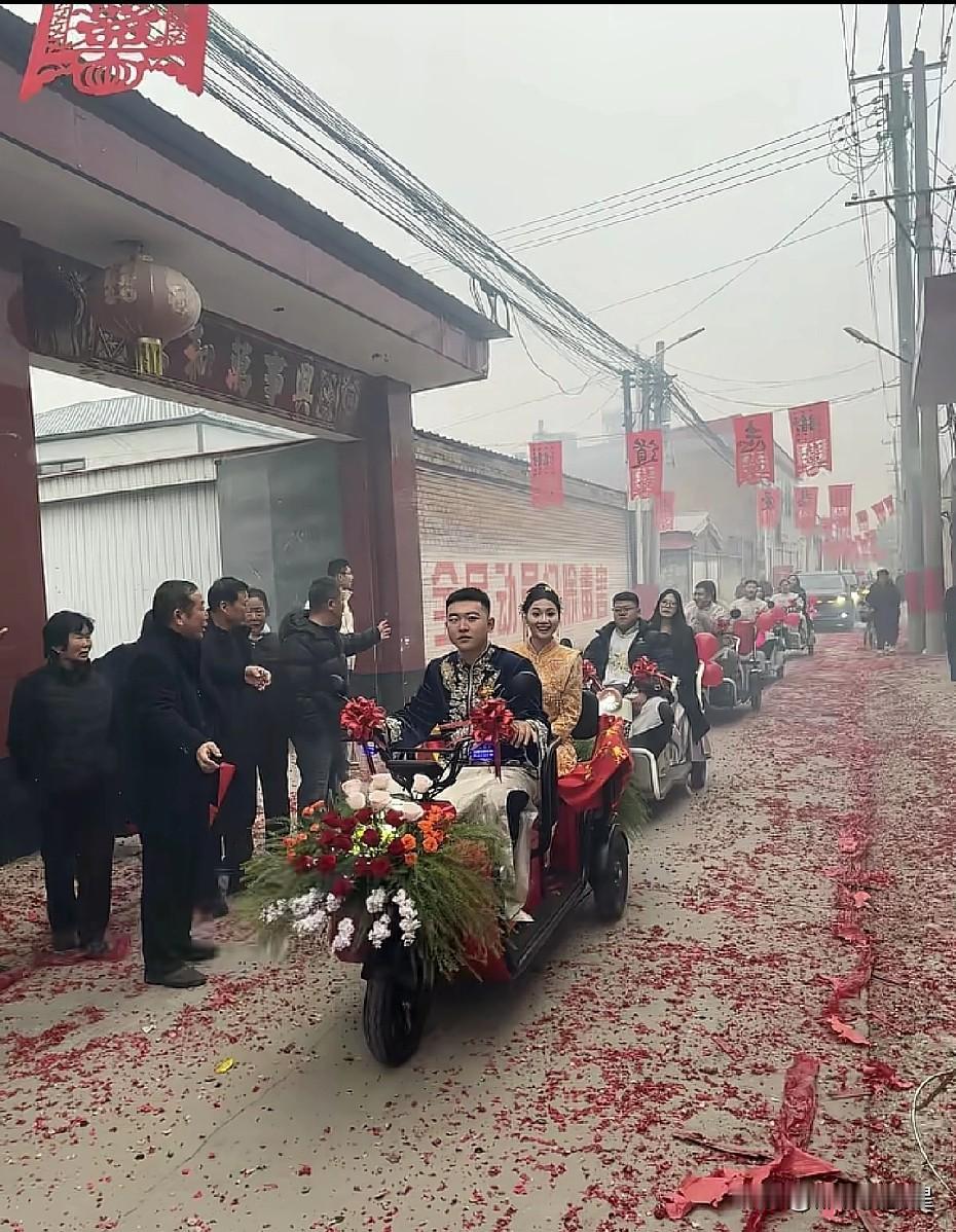 河北的年轻人中,电动车婚礼开始流行起来了。 近日,有河北网友发布视频,画面里是一场农村婚礼现场,新郎、新娘以及送亲的伴郎伴娘等,全都乘坐三轮电动车迎亲。只见新郎驾车,新娘坐在后面,眉笑颜开、春风满面,现场洋溢着喜庆热闹的氛围。 此事在网上传播开来后,引发了网友们的热烈讨论。有网友表示,结婚车队即便再豪华,也并非自己的,可省下来的每一分钱都是实实在在属于自己的,这对年轻人很明智,值得点赞! 还有网友称,早就该如此,把省下来的钱留着自己花多好! 也有网友觉得,应该在全国大力推广这种做法! 确实,普通百姓为儿女操办一场婚礼,不仅会花光全部积蓄,甚至还可能负债累累。用电动车替代豪车迎亲,不仅能省下一笔高昂的租金,将省下来的钱用于补贴小两口日后的生活,也十分实用。 正如有网友所说,这种做法应当在全国推广。 对此,大家有什么看法呢?你觉得年轻人流行的电动车婚礼值得推广吗? 年轻人开始流行电动车婚礼了 婚礼现场