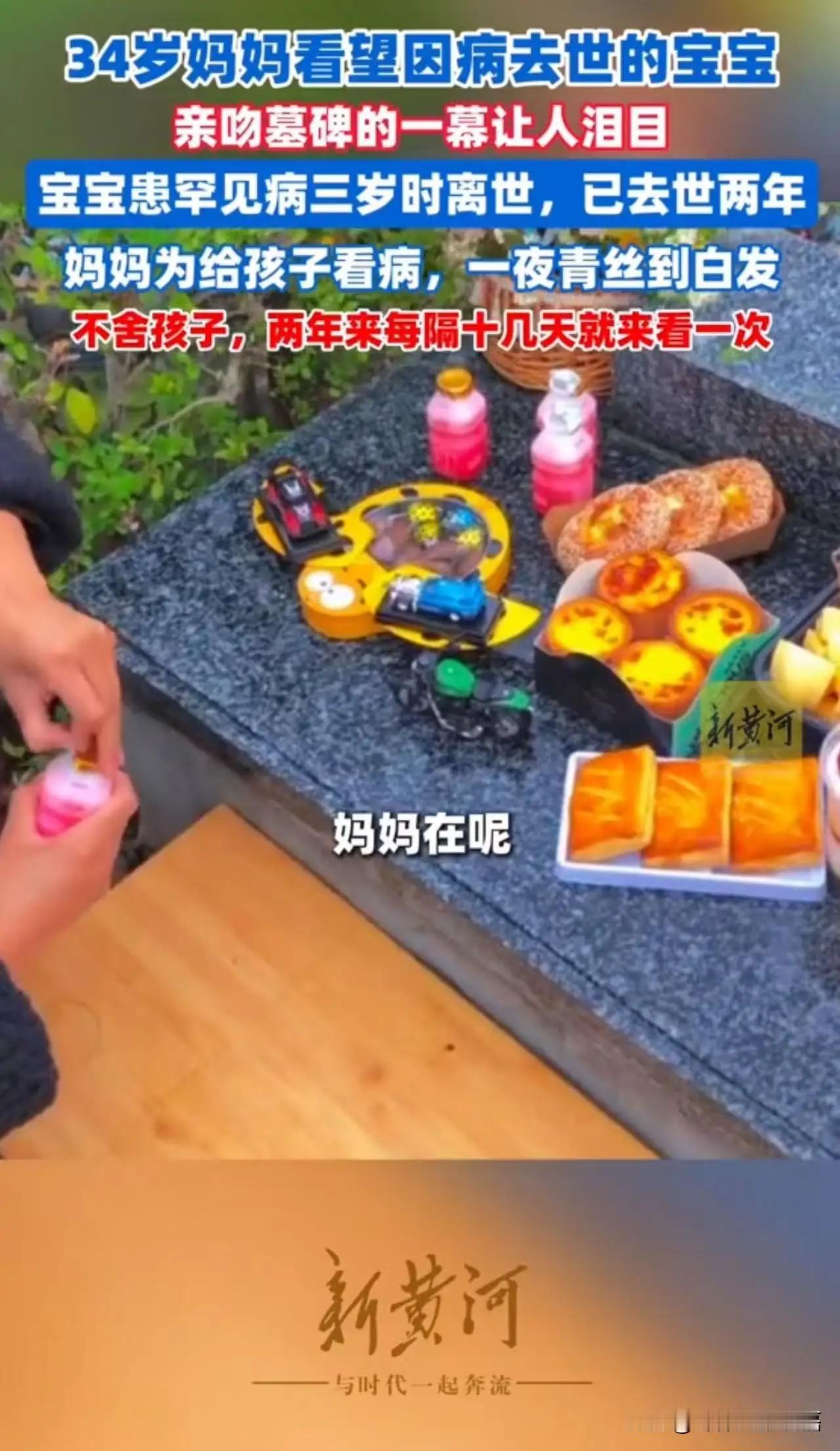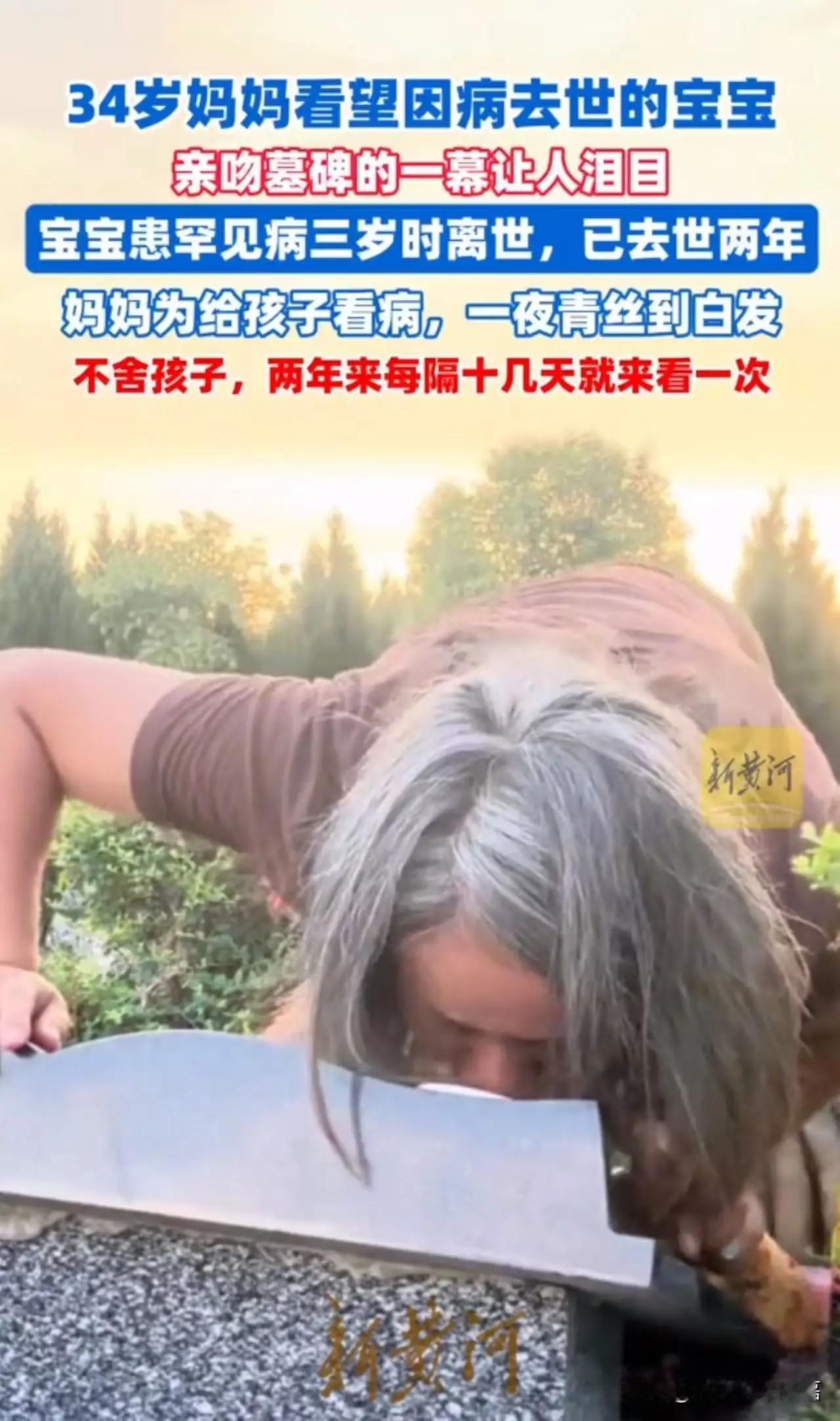 34岁妈妈看望因病去世的孩子,亲吻墓碑的一幕,让人泪目!宝宝患罕见病icon,三岁时离世,已去世两年。妈妈不舍得孩子,每隔十几天就来看一次。之前为给孩子看病,一夜青丝到白发!网友:母爱伟大到让人窒息,令人动容却也心疼! 宝宝不幸患上了罕见病,这犹如一场突如其来的噩梦,将原本平静幸福的生活搅得支离破碎。 那天,阳光依旧明媚,却无法驱散妈妈心头那片阴云。她穿着素净的衣裳,轻轻走到墓前,手中还握着孩子曾经最喜欢的玩偶。那一刻,仿佛时间都静止了,她跪在地上,双手合十,眼眶布满了泪水。她轻轻低头,将额头贴在墓碑上,嘴角颤抖着发出微弱的呢喃:“宝贝,妈妈来了,又来看你了。”说完,她缓缓弯腰,用嘴唇轻轻吻了那冰冷的墓碑,那一吻,仿佛在用全部的爱与思念,将自己与孩子紧紧相连。 这一幕,令人心碎得几乎无法呼吸。34岁的母亲,满眼的泪水,却依然坚强如钢。她知道,孩子已经离开了这个世界,但那份深沉的母爱,却像一股永不熄灭的火焰,穿越生死的界限,永远温暖着她的心。每隔十几天,她都要来到这里,用行动告诉所有人:母爱,真的是这个世界上最伟大的力量。即使天各一方,她的心都在孩子的身边,陪伴着那个小小的灵魂。 网友们看到这一幕,无不动容。有评论说:“母爱,真的是这个世界上最伟大的力量。即使天各一方,她依然用行动守护着孩子的灵魂。”有人感叹:“孩子走了,但母亲的爱永远不会散去,她用行动诠释了什么是真正的无私。”也有人说:“看到这样的母亲,我只想说:你们的爱,感动了所有人,也让我们反思生命的意义。” 然而,更令人心疼的是,这位母亲曾为了孩子的生命,日夜奔波,拼尽全力。为了寻找治疗的希望,她从青丝变白发,脸上的皱纹也悄然爬上。那一夜,她的头发从乌黑变成了雪白,那是无数个不眠之夜的写照,是她对生命的无尽焦虑和担忧。她的坚韧,背后是无法言说的痛苦与无助。她用尽所有的力量,只为那一线希望,却最终迎来了无法挽回的结局。 这个故事,不仅仅是一个家庭的悲剧,更是一面镜子,映照出无数家庭面对绝望时的无助与坚韧。它告诉我们:母爱,或许没有华丽的辞藻,但却最纯粹、最动人。它让我们明白,生命虽短暂,但那份深藏心底、永不褪色的爱,却能穿越时空,永恒不灭。 也许,我们无法改变命运的残酷,但我们可以从中学会珍惜。珍惜眼前人,珍惜每一次相聚的时光。因为,生命的意义,或许就在于那一份深藏心底、永不褪色的爱。 这位母亲用行动诠释了什么叫“伟大”,也让每一个看到的人都重新思考:我们是否也能像她一样,用心去爱,去守护那些我们在乎的人?让我们为所有像她一样的母亲点赞,也希望这个世界,能多一些温暖和善良。头号周刊 宝宝离世