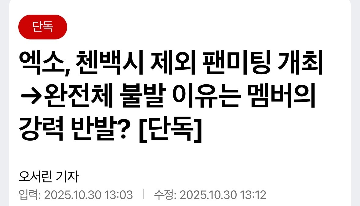 曝EXO有成员反对cbx归队 据韩媒,演出业界相关人士透露,SM与INB100双方为了EXO完整体活动,进行了多次会议,一直朝着积极的方向讨论,但EXO成员中有一位成员强烈反对,表示“包含 CBX 的 EXO 完整体绝对不可能”,因此与其他成员产生了分歧。