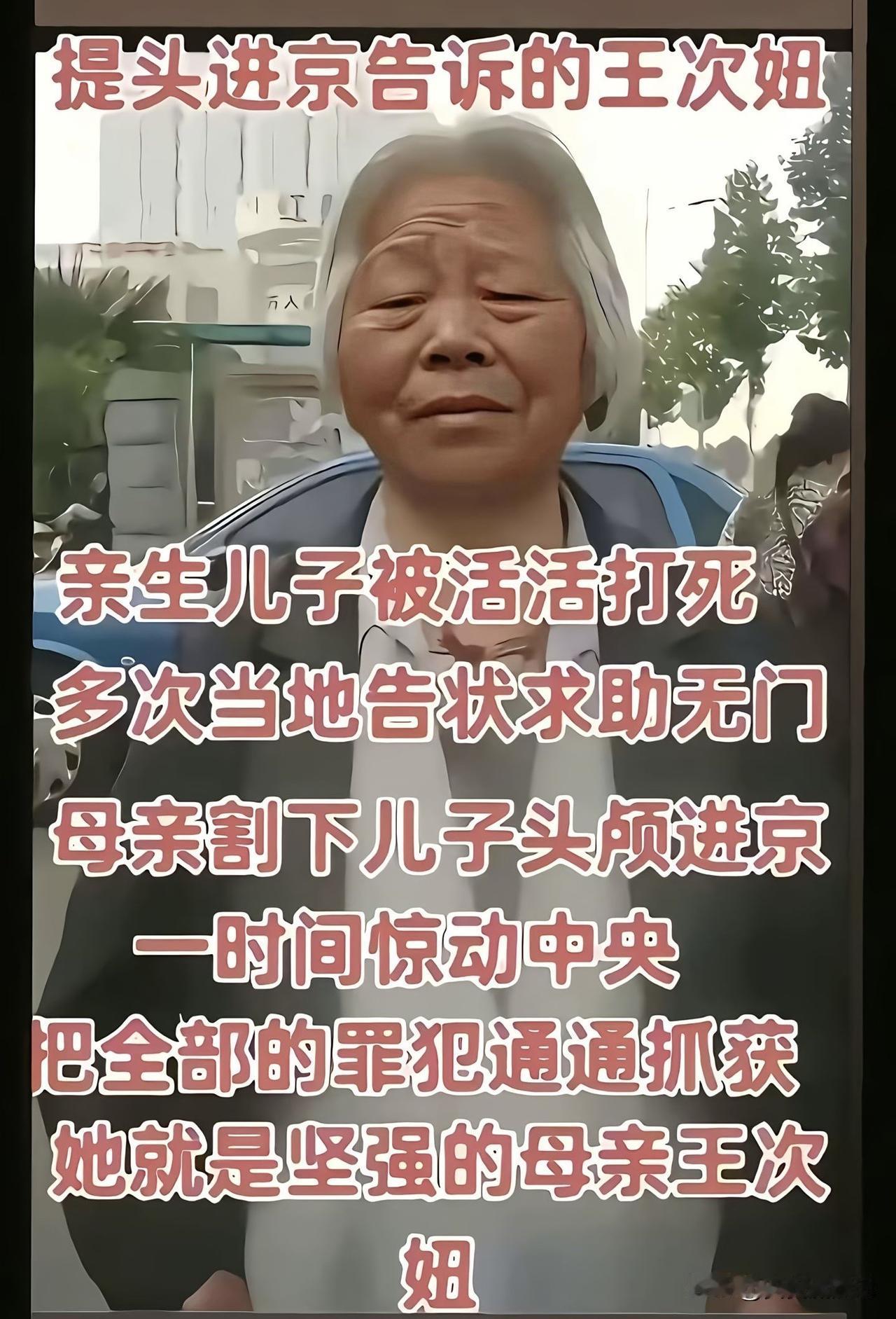 “提头进京事件”说的是1991年河南农妇王次妞的悲惨遭遇。那年1月,她大儿子姚国强在金矿打工,矿主白华山丢了280余克黄金,便诬告是姚国强偷的,民警张亚伟也没细查,对姚国强一顿毒打。姚国强被打昏几次仍不承认,最后呼吸急促、身体抽搐,警方和矿主却直接离开,姚国强去世后还被扔到河沟。 王次妞去县里申冤无果,绝望之下,她效仿书中古代母亲,亲手割下儿子头颅进京告状。最终,1991年9月11日,主犯张亚伟和白华山被判无期徒刑,其他参与殴打者也获相应刑罚。这事件让人看到底层百姓申冤的艰难,也彰显了正义虽迟但到。