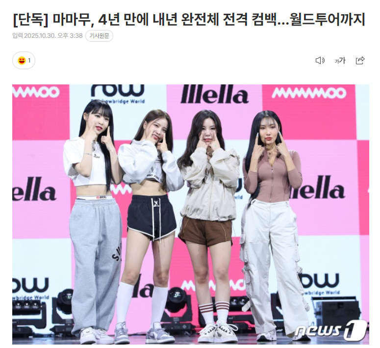 MAMAMOO回归MAMAMOO将回归 据韩媒,MAMAMOO时隔四年完整体回归并举行世巡!报道称,组合最近为了完整体回归完成了最终协调,计划于明年6月推出完整体新专辑,并在发行后以韩国为起点进行世巡,所有活动将由RBW全权负责。