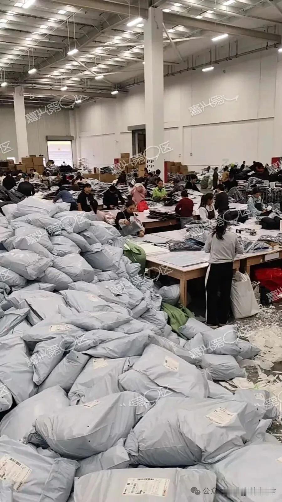 太疯狂!嘉兴一服装厂爆单,衣服堆积如山,员工们都在熬夜赶工! 一年一度的双11来临, 除了快递员忙碌,厂里也是加班加点, 忙得不可开交! ↓↓↓ @第九区网友爆料: 桐乡一家服装厂生意也太火爆了, 工人经常熬夜赶工期, 做得手都没时间停不下来! 车间里堆的都是衣服, 全是打包的快递,都要比人高了! 真正的旺季到来了~