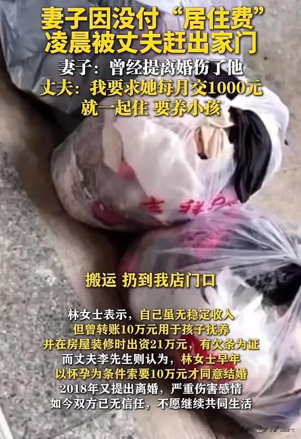 妻子因“1000元居住费”被赶出门:婚姻里的“账”,从来不是钱的事 凌晨三点的寒风里,王女士裹着单薄的外套站在楼道口,手里攥着没来得及收拾的行李,眼泪冻得直流。几个小时前,丈夫把她推出家门,理由很直白:“这个月1000块居住费你没交,要么交钱,要么别住。” 王女士不是不想交,只是最近刚失业,手里的钱只够给孩子买奶粉。她红着眼眶辩解:“我知道之前提离婚让你生气,可我们还有孩子啊,你怎么能这么逼我?”可丈夫态度坚决,坐在沙发上刷着手机,头也不抬:“我要养孩子,家里开销不小,她住在这里,分担1000块很合理。” 这话传到网上,评论区瞬间吵翻了天。有人骂丈夫“冷血”:“夫妻本是同林鸟,她失业了不帮忙就算了,还收居住费?这哪是丈夫,分明是房东!”也有人站在丈夫这边:“之前妻子提离婚伤了他,现在又不承担家用,男人养家也不容易,提要求没毛病。” 可仔细想想,这场争吵的核心哪里是1000块?是丈夫把“付出”算成了明码标价的账,忘了婚姻该有的体谅;也是妻子在矛盾中,没找到和丈夫好好沟通的方式。真正的夫妻,从来不是“AA制”的合租伙伴,而是遇到难处时,能说一句“别急,我陪你一起扛”的人。 就像有网友说的:“婚姻里的寒心,从来不是突然的,是一次次把对方推远的小事堆出来的。”不知道这对夫妻最后会不会和解,但希望他们能明白:家是讲爱的地方,不是算账的地方,把钱看得比人重,再暖的家也会变冷。 需要我针对“婚姻里该不该算清钱”这个话题,整理几个不同角度的观点,方便你引导读者在评论区讨论吗?