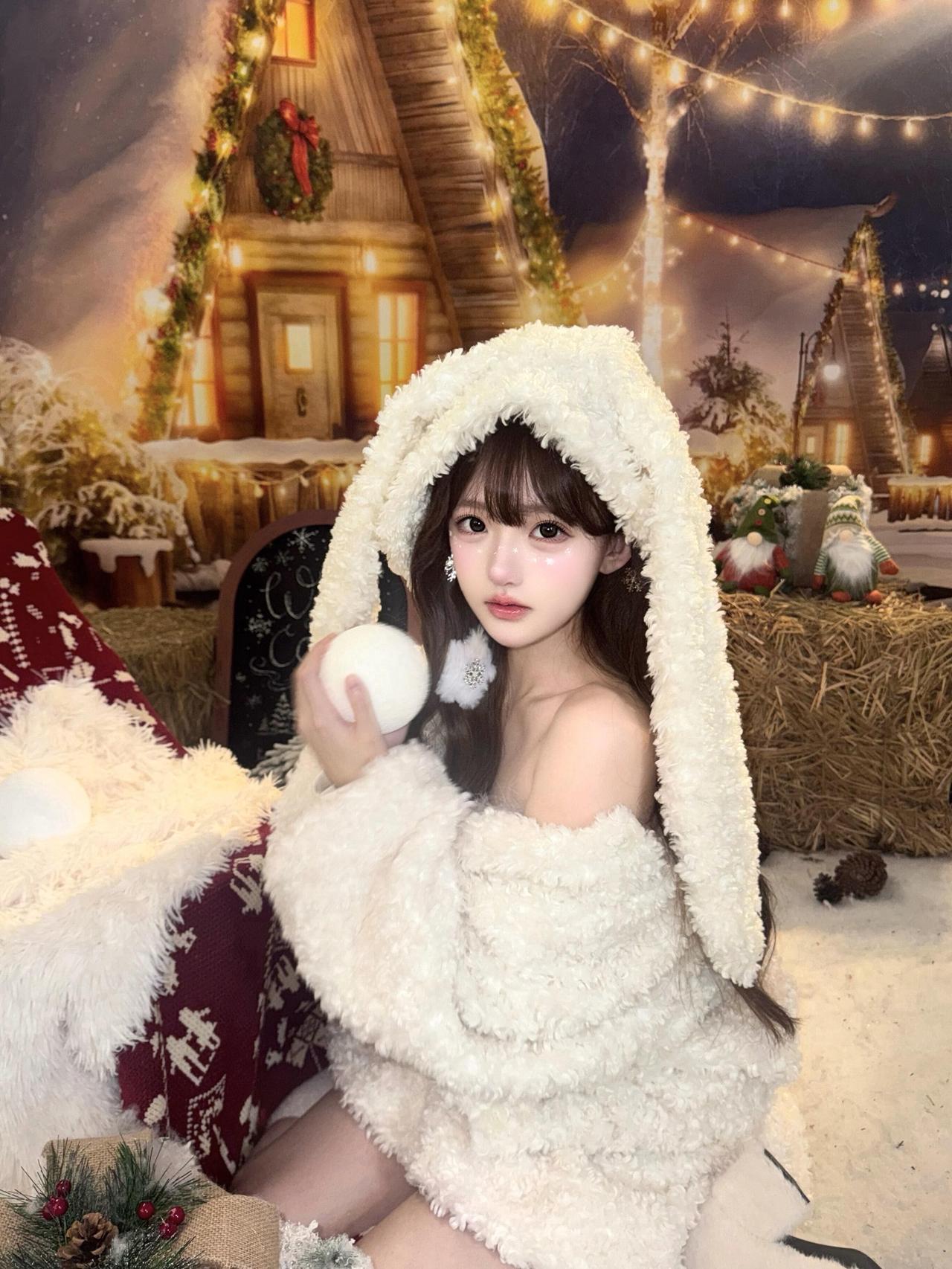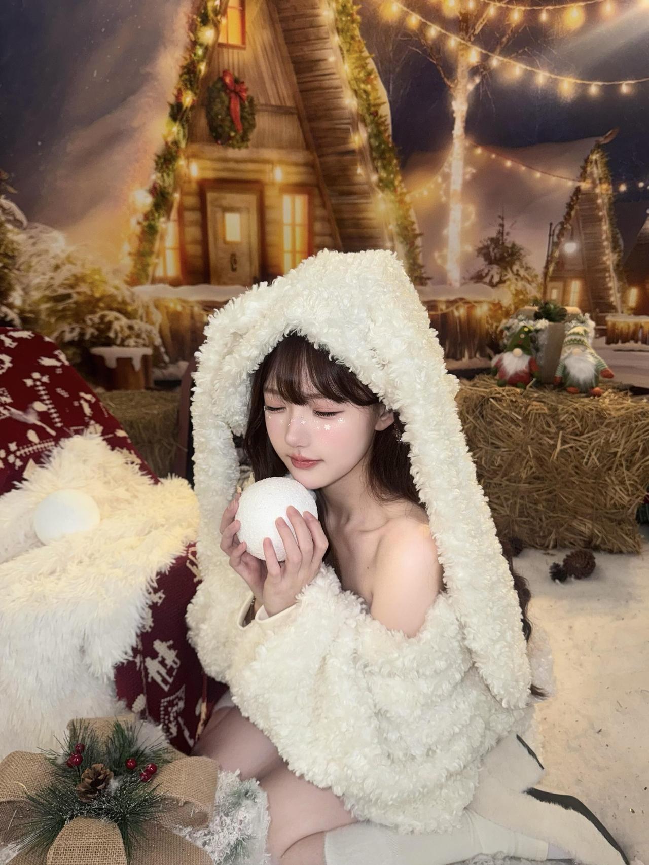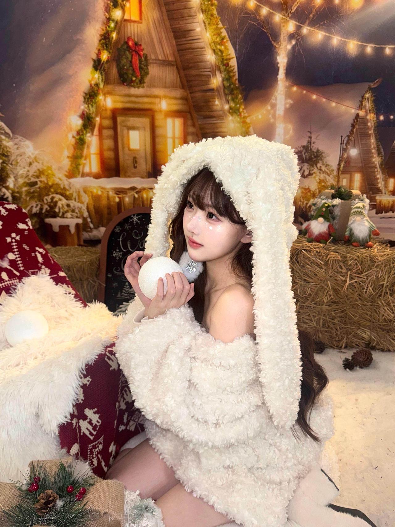 ₊˚白兔な夢⁺֯𓈒🐰今天去拍圣诞写真啦~ 简直就是一只毛绒绒的小兔