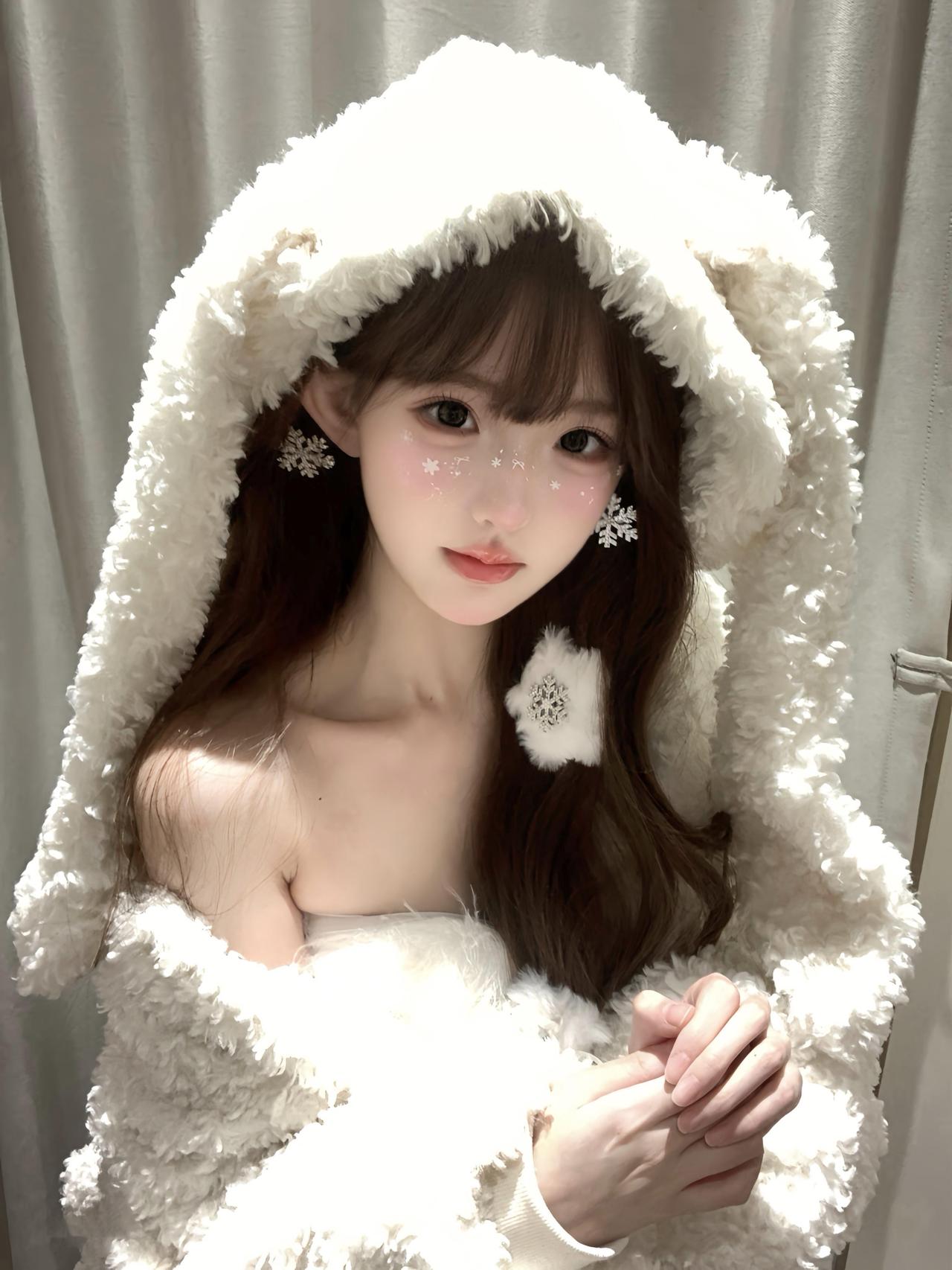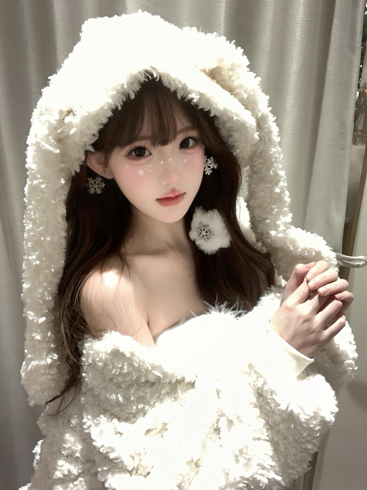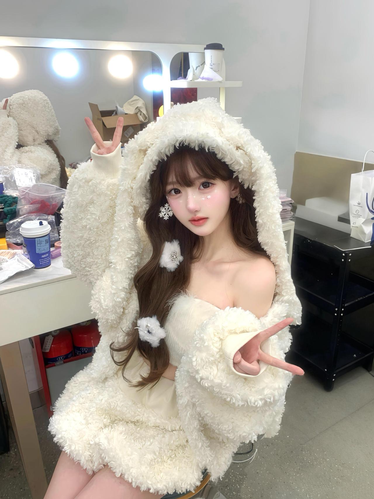 ₊˚白兔な夢⁺֯𓈒🐰今天去拍圣诞写真啦~ 简直就是一只毛绒绒的小兔