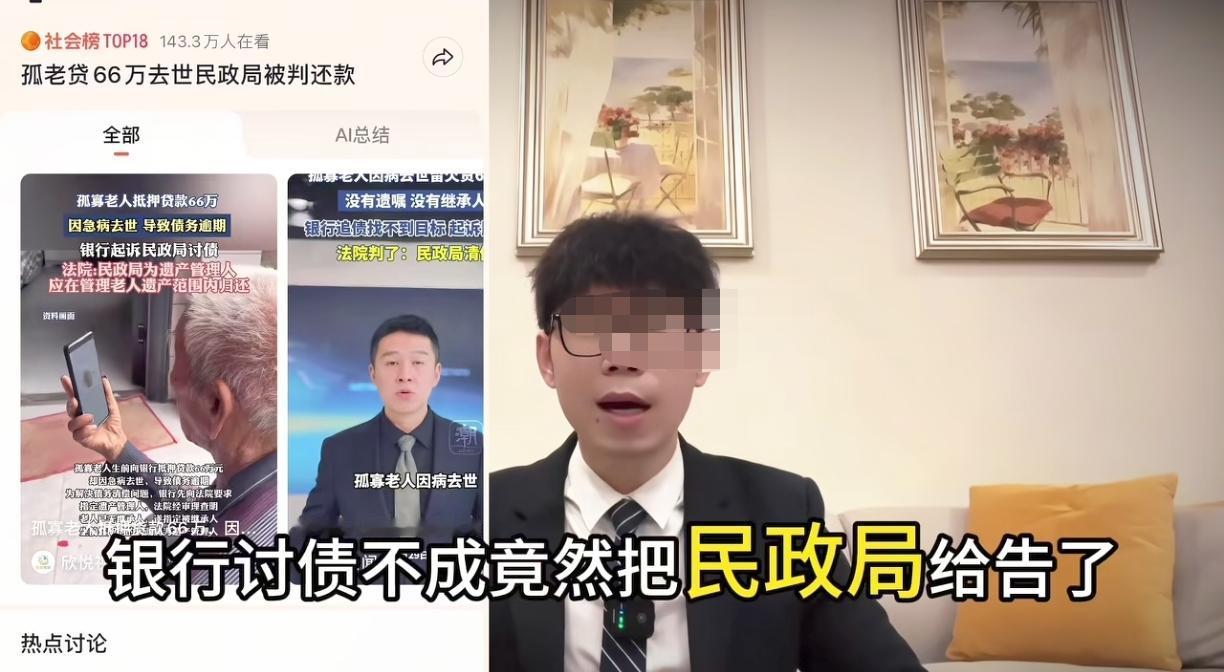 银行怎么都不会吃亏! 上海孤寡老人急病去世,欠银行66万贷款,由于老人没有遗嘱也没有遗产继承人,银行居然把民政局当被告告上法庭,听起来是不是很荒诞? 这是真事,而且银行还赢了 有网友说了“要银行真有本事,为什么不让许家印把那2万亿吐出来呢”? 对于此次银行讨债行为,新闻里做出了解释,为什么银行会起诉民政局,这是因为民法典1145条,无继承人,遗产管理人就是当地民政局或者村委会,那银行起诉民政局属于正常途径,民政局为孤老“托底”,银行可以要求他们还清债务,若有剩余就归国家所有了。 那么我想问,如果反过来老人有存款存在银行,又会是什么结局呢?