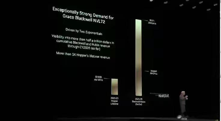 近日,在GTC技术大会上黄仁勋宣称:即便不含中国市场,英伟达未来五个季度订单仍高达5000亿美元,是上一代芯片的5倍!