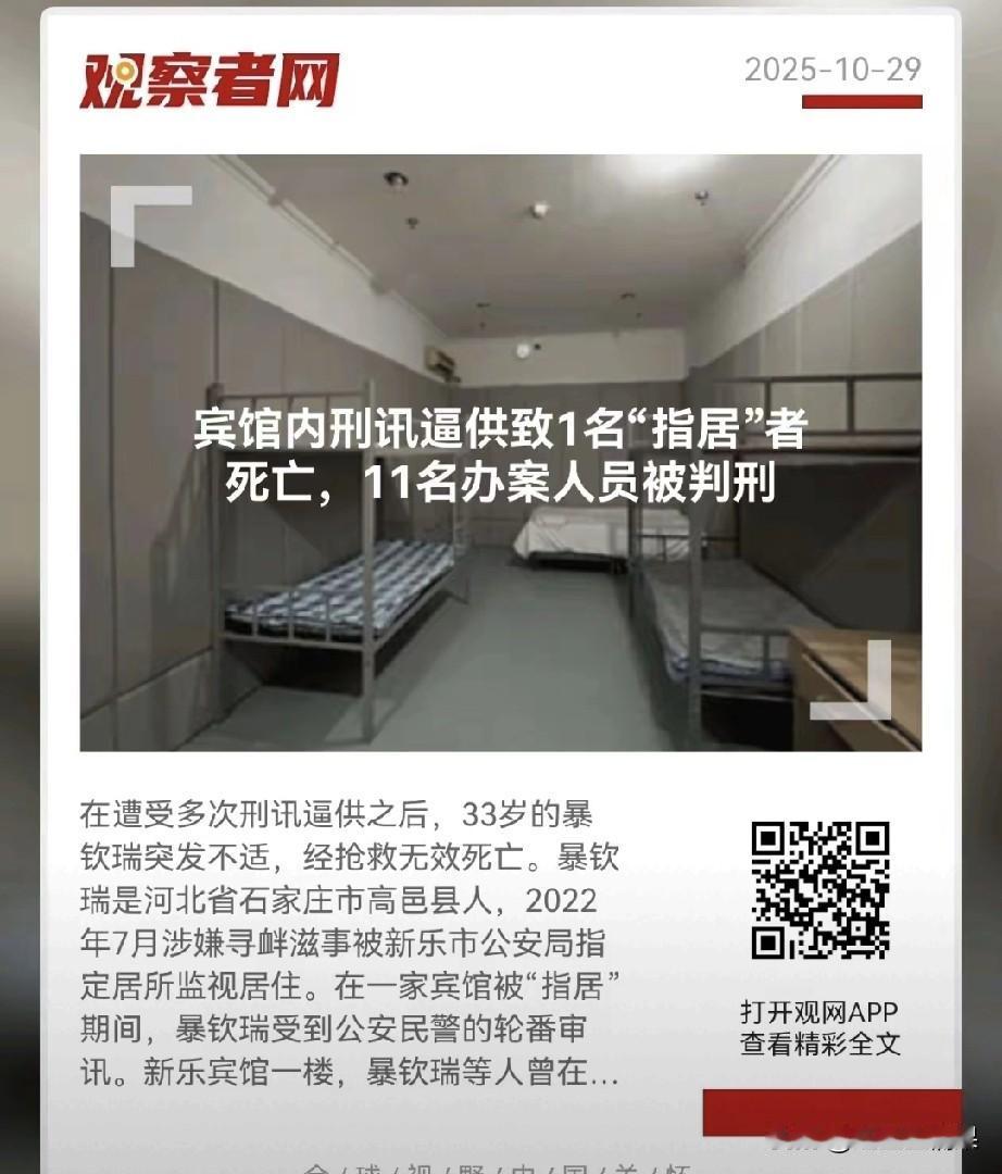 真没有想到都2022年了河北居然还有“刑讯逼供”导致被看管人员死亡的行为。 我只想问问,内部监管在哪里?总以为刑讯逼供是很久以前的事情了,现在听到这个词,应该比较小众才对。真的是没有想到,居然还能发生,而且那么多人参与,相互监督、内部监管都成了摆设,难道他们的领导视而不见或者参与其中,这才是难以平静的。 如今,参与知法犯法得11名警务人员都付出了应有的惩罚,只是他们还不服从判决,知法犯法应该罪加一等才对。 遗憾的是,被管控的人,已经死亡。