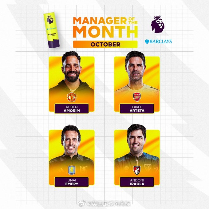 【阿圣之争!月度最佳】英超联赛2025年10月“月度最佳主帅”四大候选人: