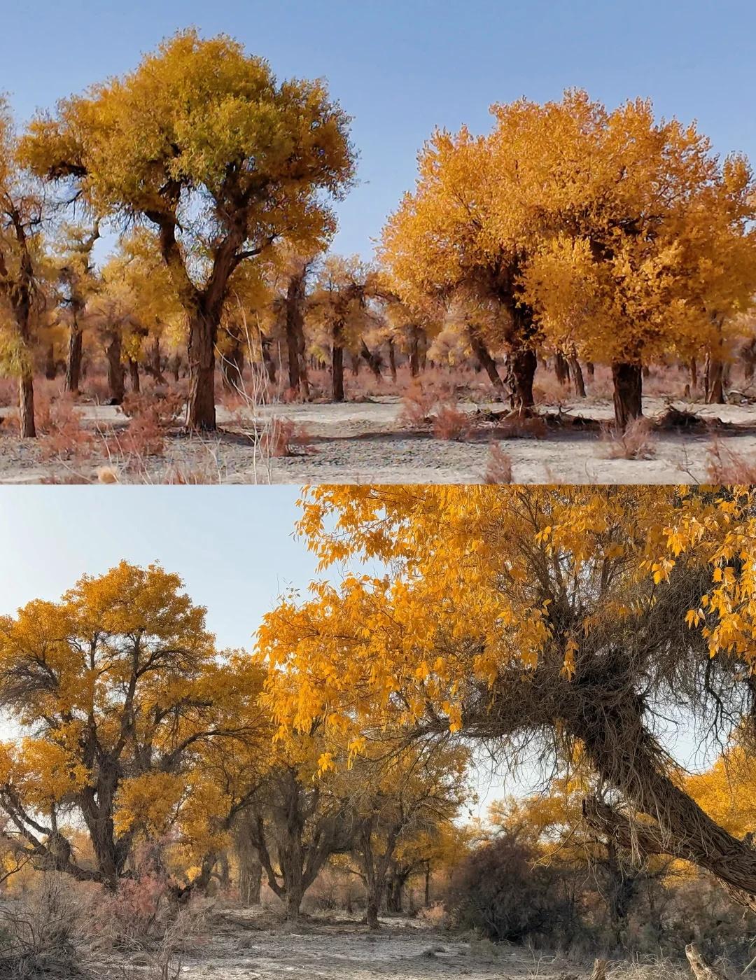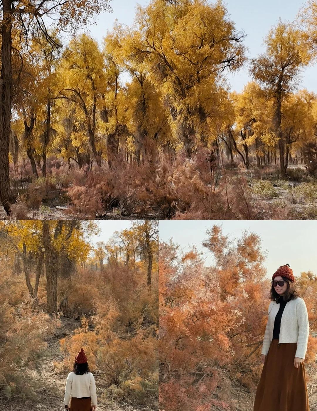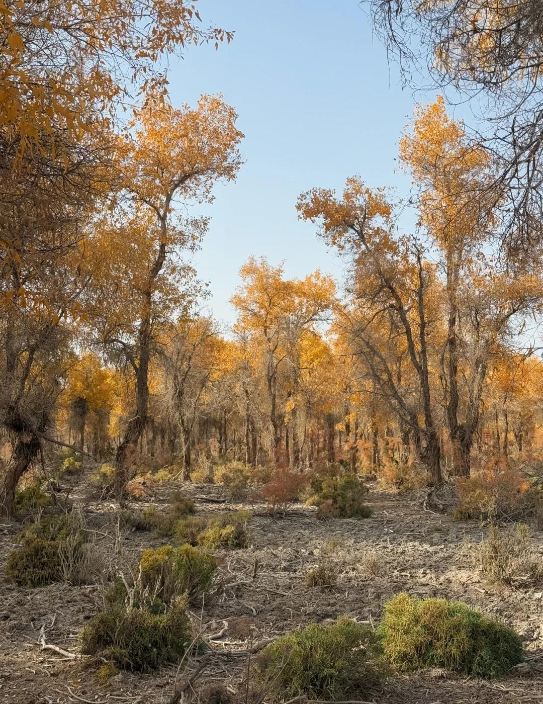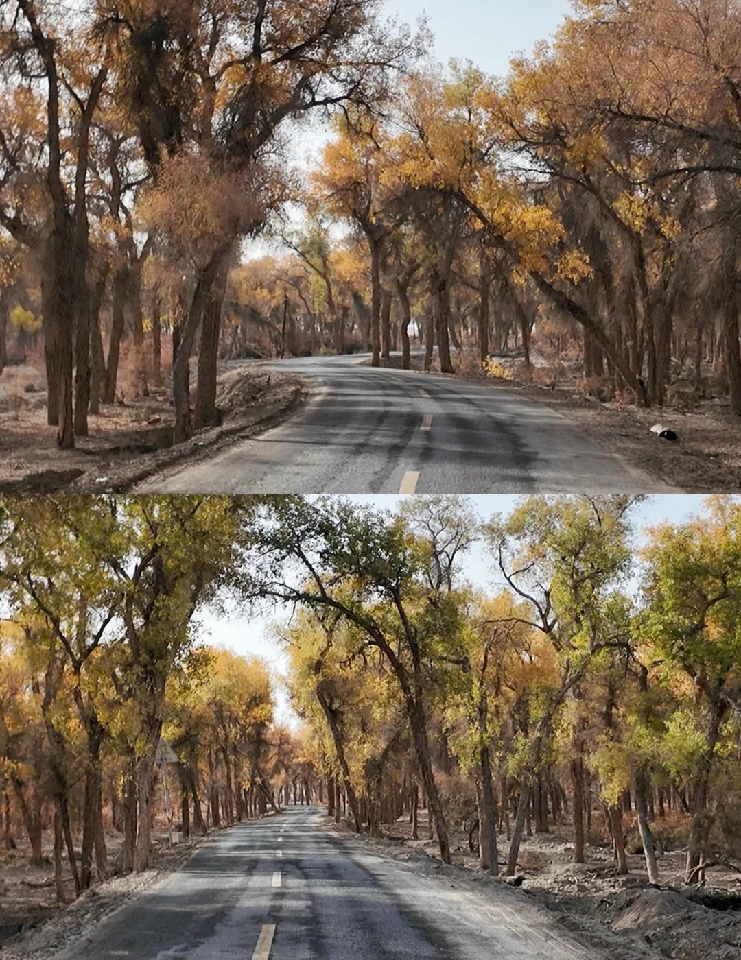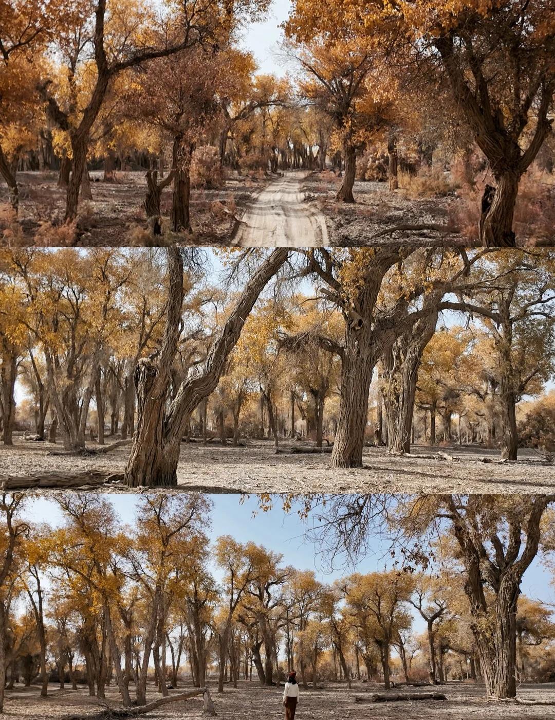 139胡杨秘境 我是早上8:30从库车出发,自驾前往地图上搜索的139起点。一路上还拍了棉花卷,大概10点半开始路边出现胡杨林,11点半抵达路标起点。我认为可以再早一点出发。 139分东、西两段,两端点都可以成为终点和起点。中间会路过盖孜库木乡,从沙雅过来也可以从这里开始走半段。但附近没啥景点串联的,直接安排一整天挺好的。我没有进景点,那些湖我开车进去看了眼就走了。反倒是路边林子,看着还不错的地方开进去,大部分图片都是在里面的林子拍的,人少树多林下留白,很出片。 139的林下比较干净,底下有呈现粉色的红柳,还有绿色的柏类,没有太多乱七八糟的杂草;胡杨分布密度舒适,树冠也没有太多枯败的枝桠,很多地方足够空间让胡杨展开树冠,所以有不少一棵成景的树,拍照很出片。 旅游真的很天时地利人和,天气好,时间刚好,人少。 沙漠胡杨林 一起赏秋景 139胡杨秘境 新疆 南疆 旅游