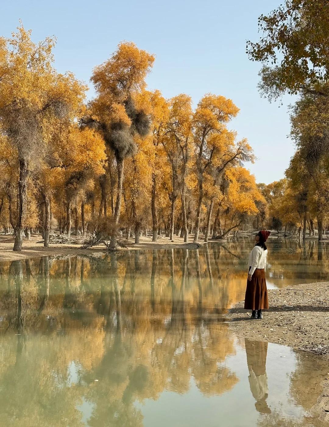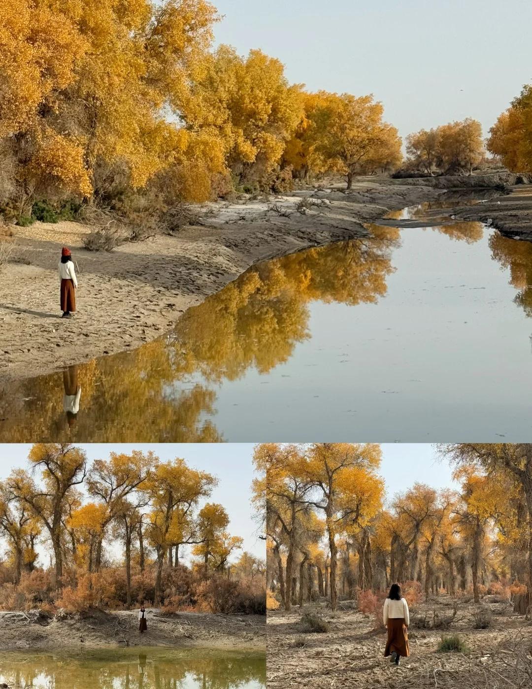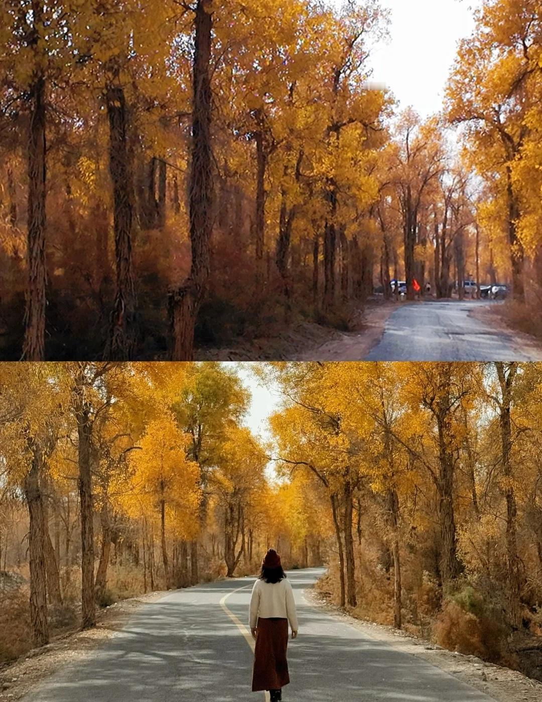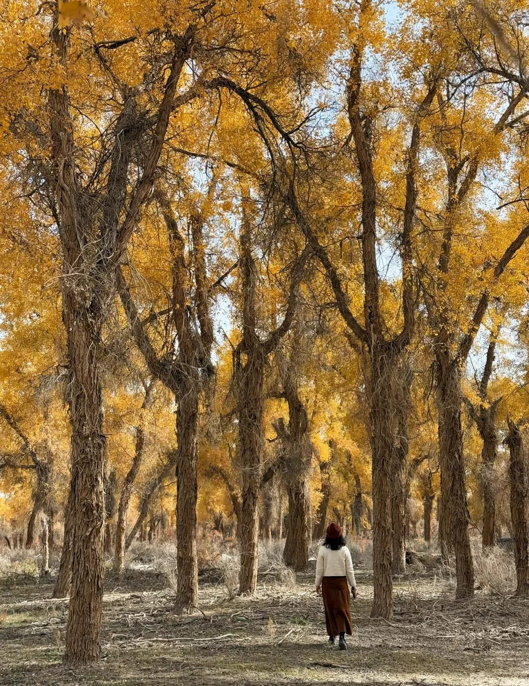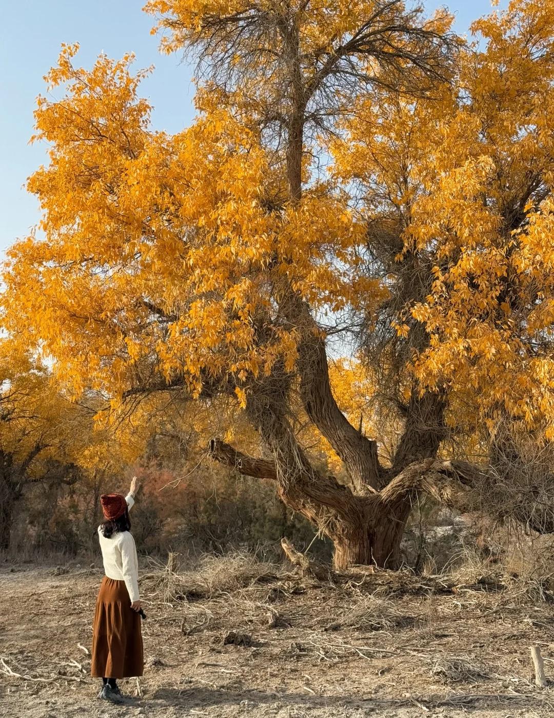 139胡杨秘境 我是早上8:30从库车出发,自驾前往地图上搜索的139起点。一路上还拍了棉花卷,大概10点半开始路边出现胡杨林,11点半抵达路标起点。我认为可以再早一点出发。 139分东、西两段,两端点都可以成为终点和起点。中间会路过盖孜库木乡,从沙雅过来也可以从这里开始走半段。但附近没啥景点串联的,直接安排一整天挺好的。我没有进景点,那些湖我开车进去看了眼就走了。反倒是路边林子,看着还不错的地方开进去,大部分图片都是在里面的林子拍的,人少树多林下留白,很出片。 139的林下比较干净,底下有呈现粉色的红柳,还有绿色的柏类,没有太多乱七八糟的杂草;胡杨分布密度舒适,树冠也没有太多枯败的枝桠,很多地方足够空间让胡杨展开树冠,所以有不少一棵成景的树,拍照很出片。 旅游真的很天时地利人和,天气好,时间刚好,人少。 沙漠胡杨林 一起赏秋景 139胡杨秘境 新疆 南疆 旅游