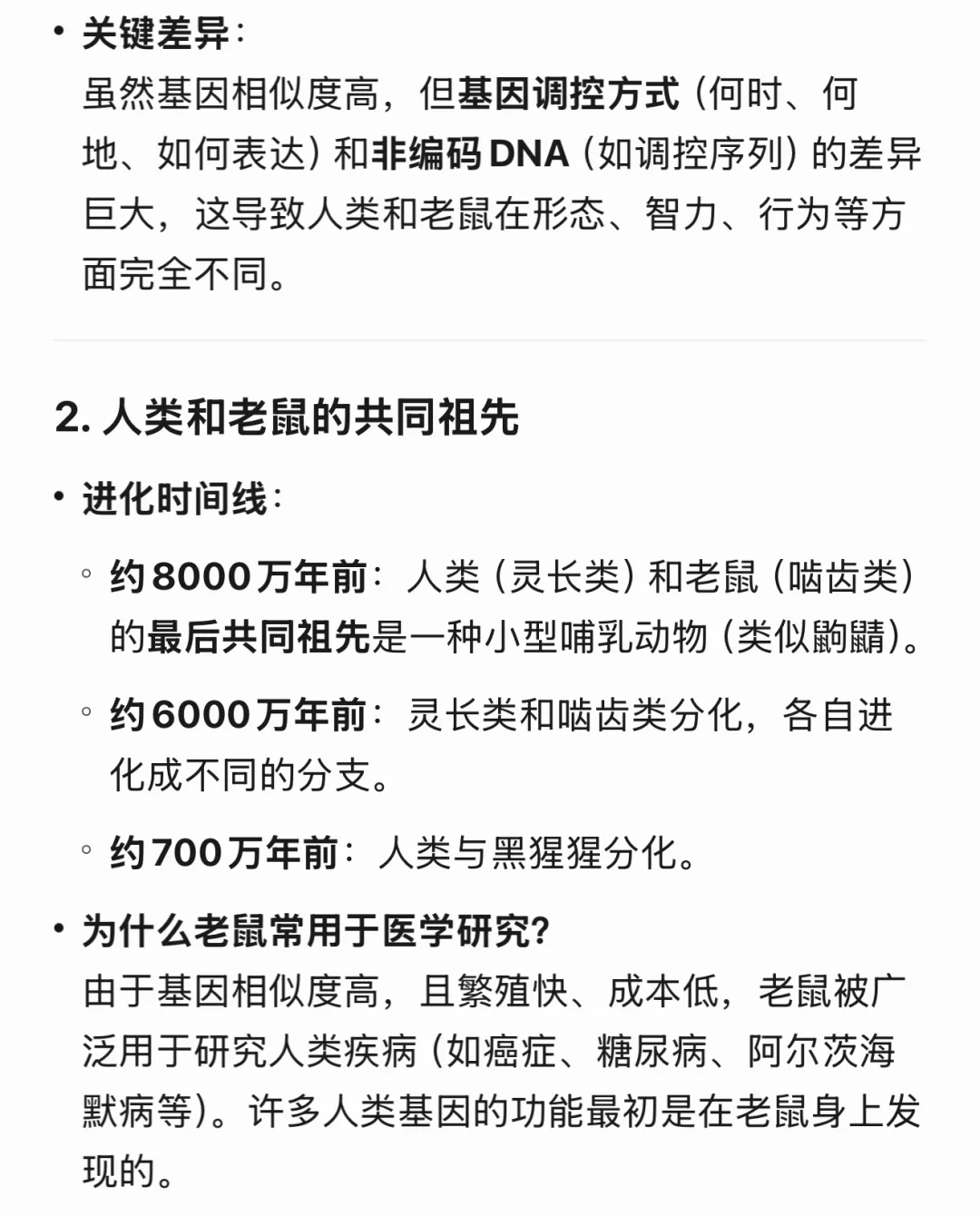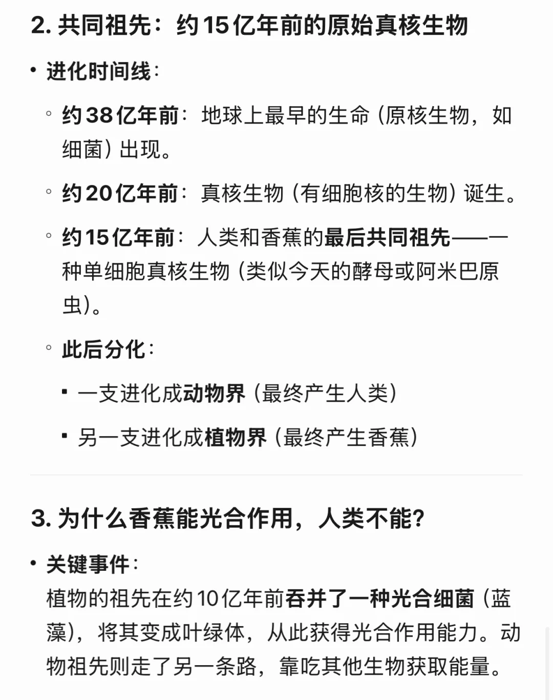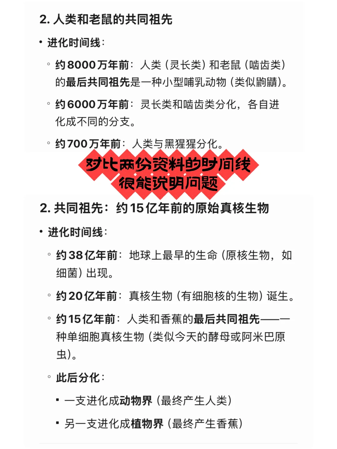 是Deepseek关于【人和老鼠】以及【人和香蕉】亲缘关系的解答截图