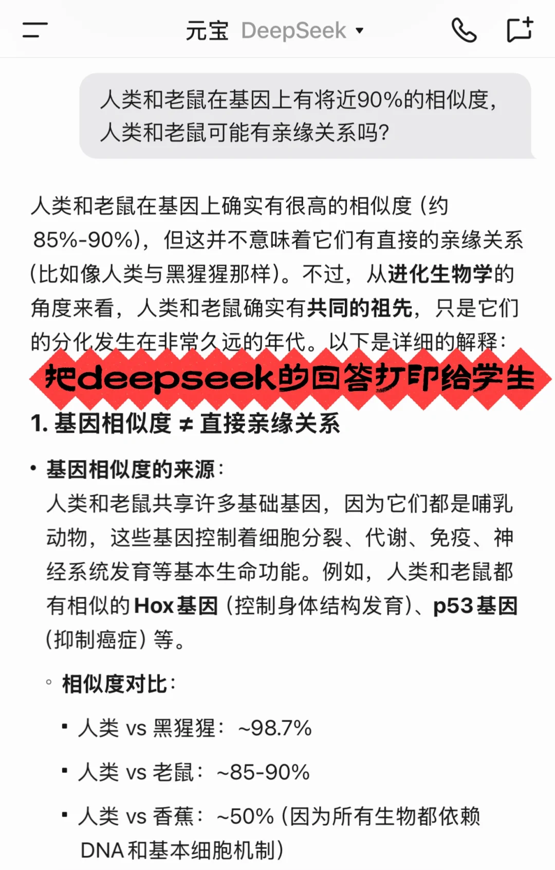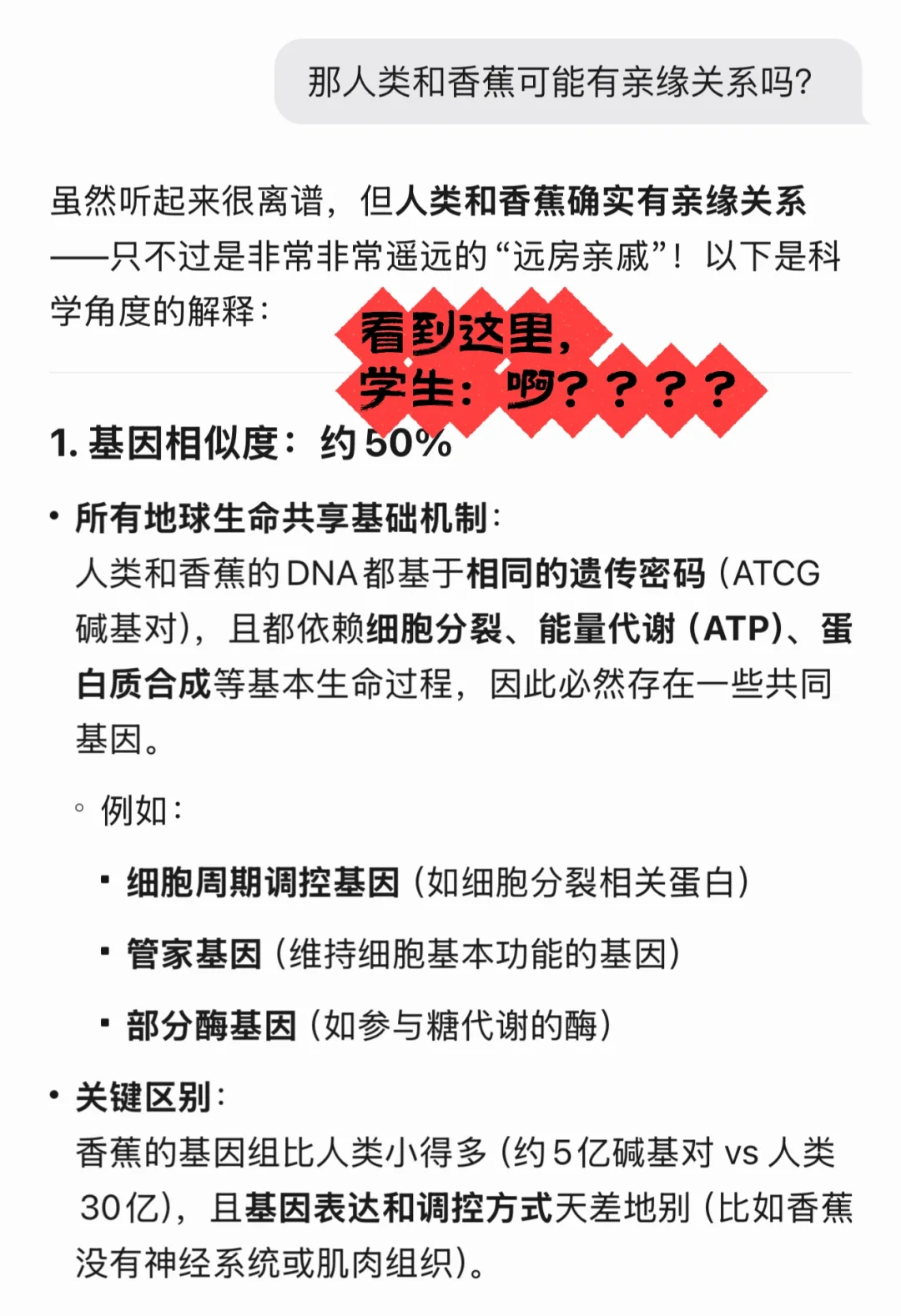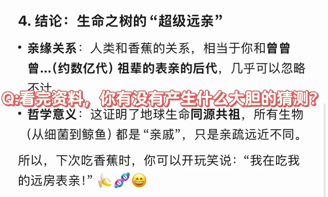是Deepseek关于【人和老鼠】以及【人和香蕉】亲缘关系的解答截图