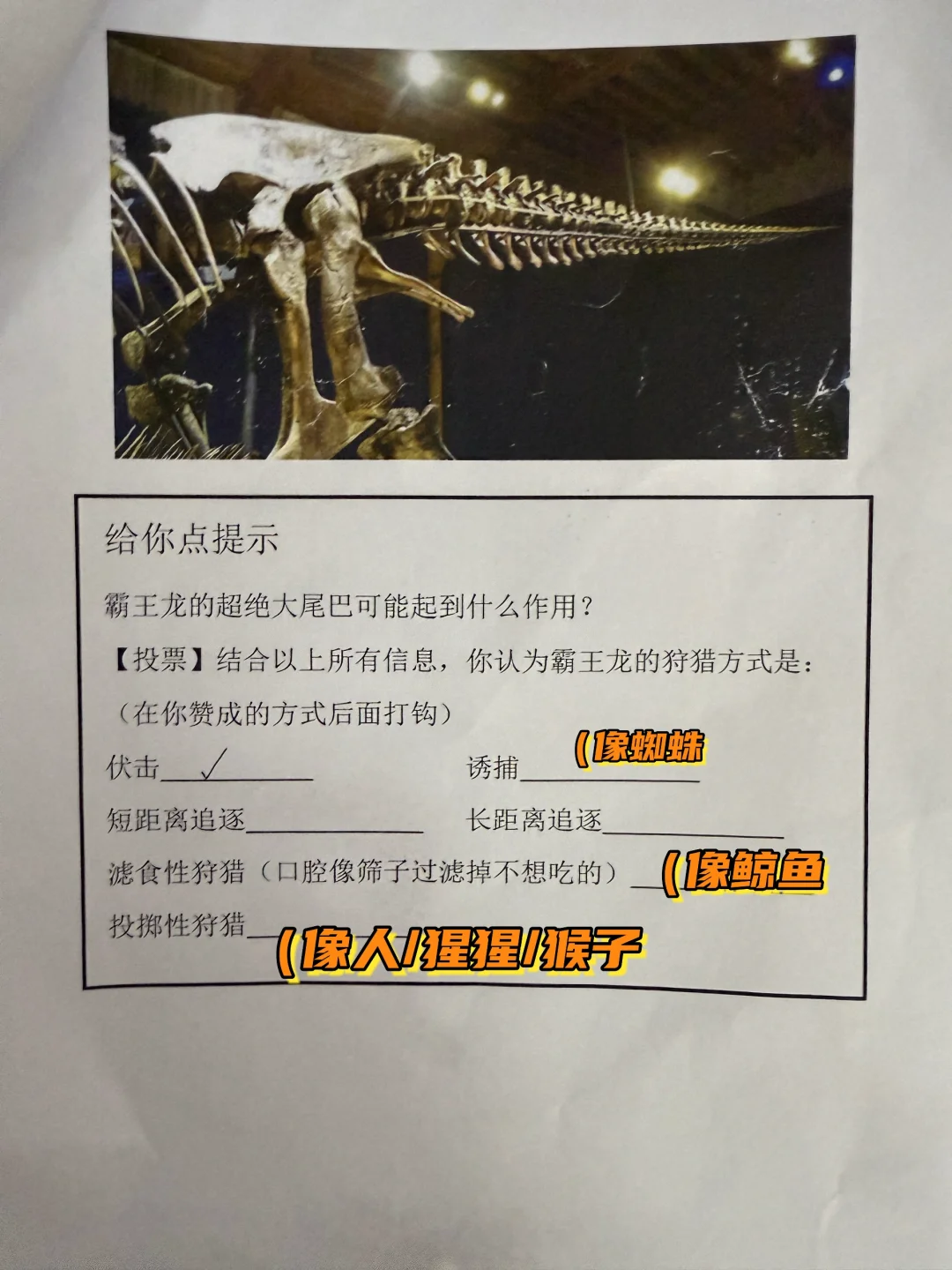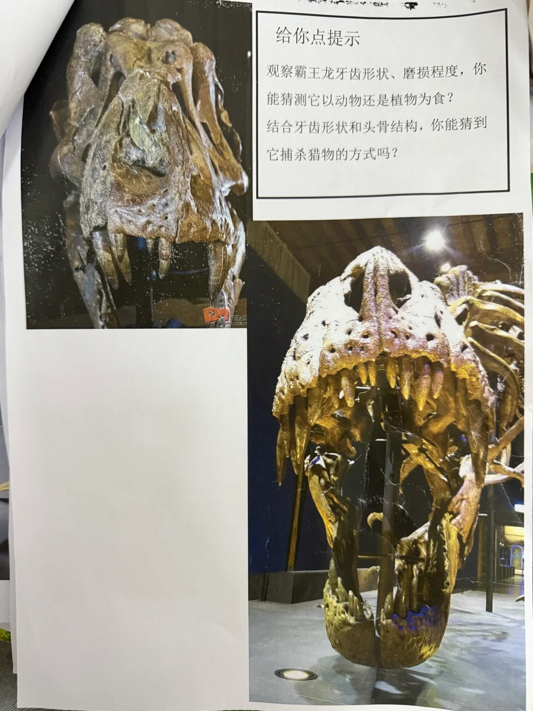 1️⃣提出任务:通过霸王龙的骨骼,猜测它的生存习性