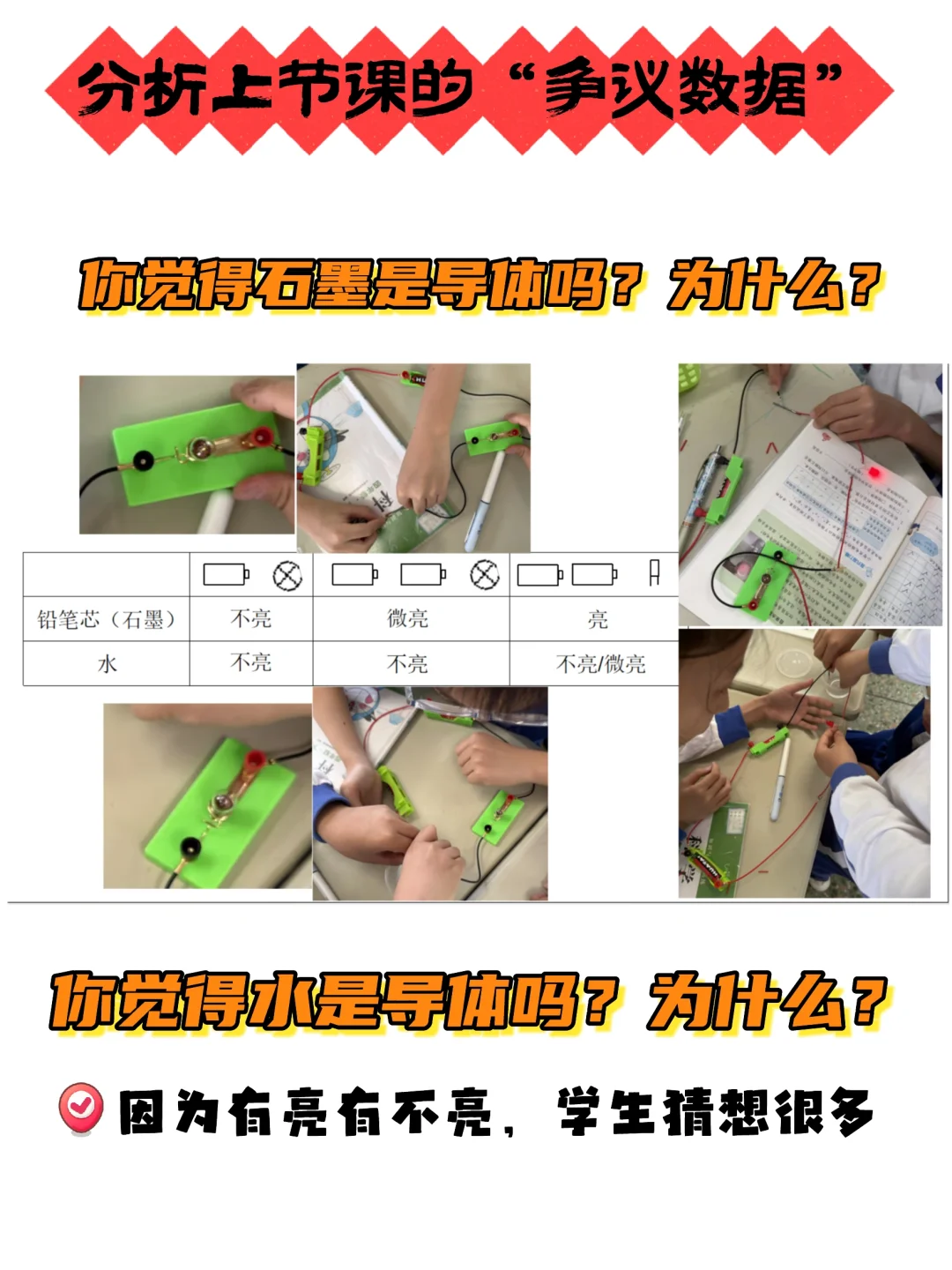 📍猜测一:是导体,因为有的组做到“微亮”,说明水只是电阻比石墨更大而已。(前面解释石墨时引入了“电阻”的表述)