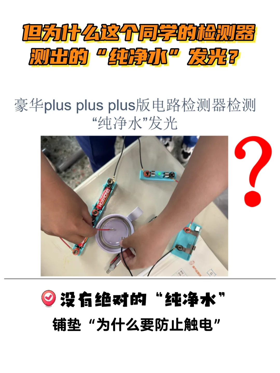 [私信R]:那为什么这位同学,换了个【对电流更敏感的二极管】,测老师发下去的纯净水,却是亮的?