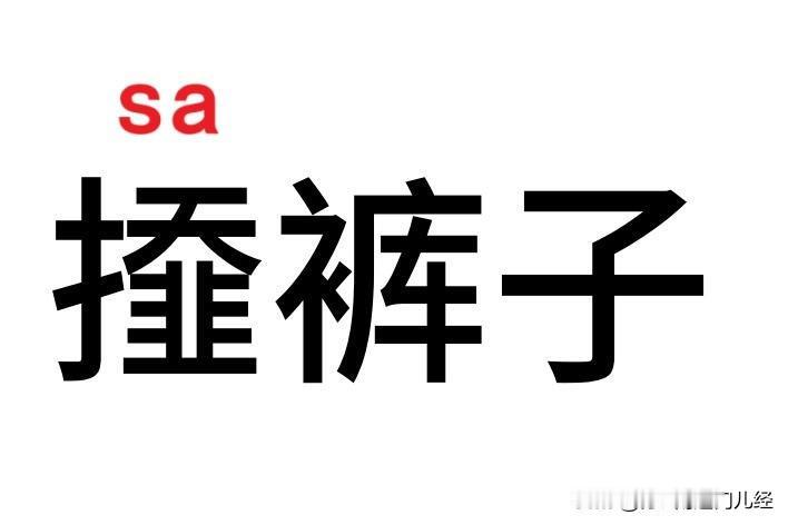 𢶍(sa)裤子,南通话常用语,指的是把裤腰整齐掖在衣服里,也可以说𢶍(sa)被单,指把被子掖好;𢶍(sa)裤脚管,指把裤脚勒紧或者掖入袜子里。不仅仅是南通话,如皋话、海安话、如东话、金沙话、通东话、启海话都有一样的说法。