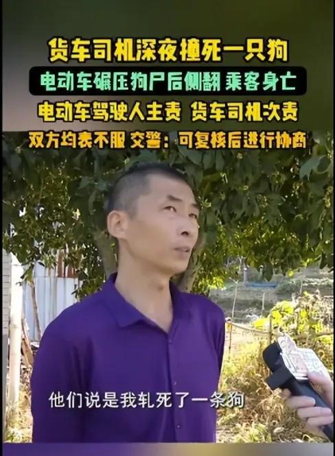 奇葩事故 奇葩的判罚! 货车深夜撞死一只狗 电动三轮车碾压狗尸后侧翻致乘客死亡 交警:电动三轮车主责,货车司机次责 今年9月,河南的李先生开着一辆平板货车经过杭州219省道桐庐段时,感觉车轮下似乎轧到了什么东西,他当时没有在意就开走了。第二天一早他接到了交警的电话,才知道当时压死了一条狗,而狗的尸体引发了另一起交通事故,一辆电动三轮压狗尸后侧翻,导致电动三轮一位71岁乘客死亡,狗无人认领,李先生货车当即被交警扣下 后来,交警通知李先生责任认定出来了,认定书显示,电动三轮车驾驶人承担事故的主要责任,李先生承担事故的次要责任。对于这样的责任划分,双方都表示不认可 对于这样的事故,大家怎么看呢? .