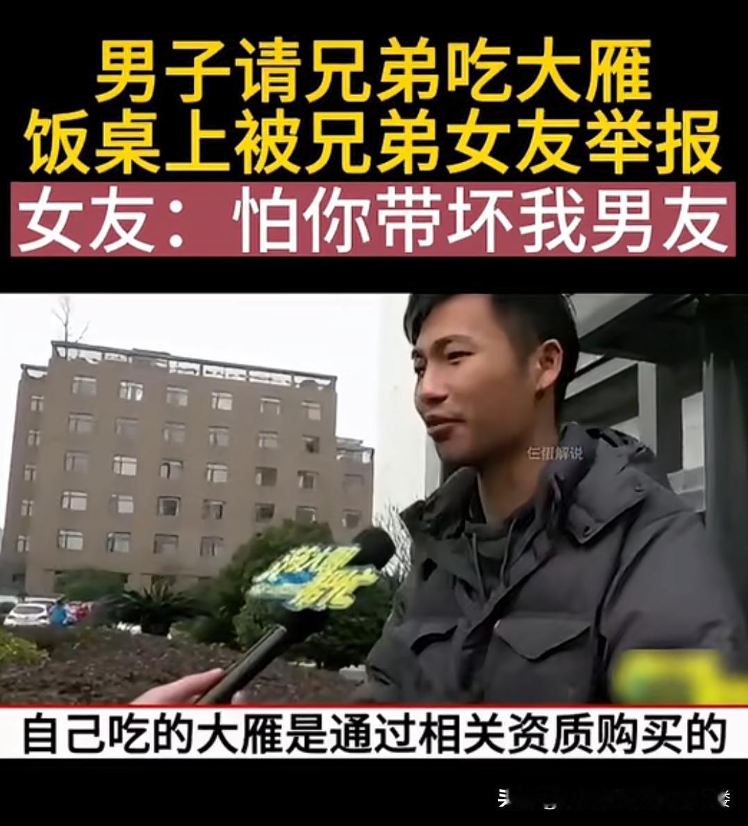浙江杭州这事儿太奇葩了。李先生花自己的钱买大雁,做熟请朋友吃,朋友还带了女友。这女友吃得满嘴流油,吃完竟举报李先生,说怕男友被带坏。李先生也不慌,拿出从正规店铺购买养殖大雁的订单,证明自己没违法。 原来,李先生爱交朋友,常在家设宴。这次买大雁时,店家保证是人工养殖能放心吃,他还特意留了购物凭证。结果这女友吃完就变脸,也不管人家李先生已经证明没问题。只能说这女友的操作太迷惑,这饭吃得真是闹心!