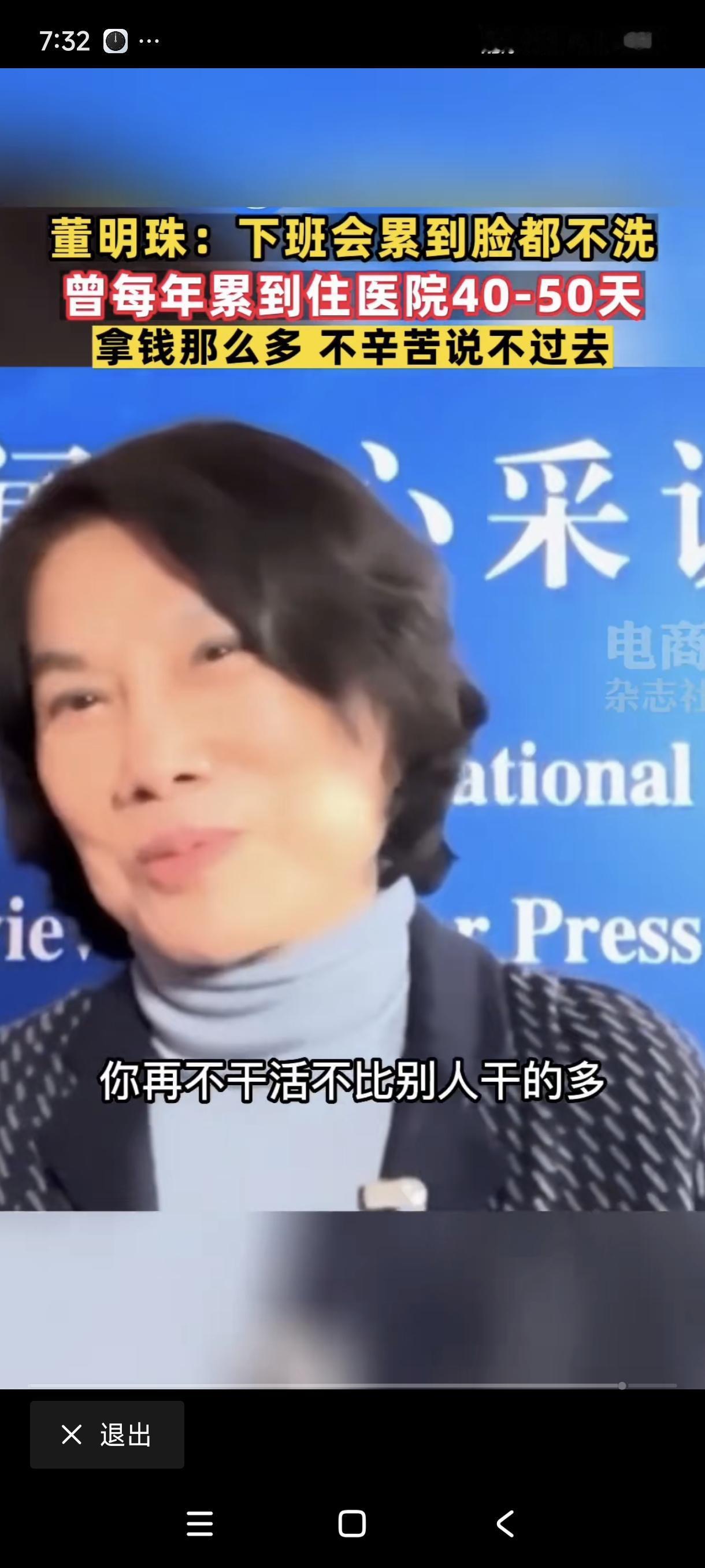 董明珠在接受采访时说的话我差点看成了“我工作这么辛苦,如果不比员工的工资多,那说不过去”。其实她的原话是:“我一年有那么多的年薪,比工人已经多拿了很多倍,要是再不干活,不比别人干的多,自己对自己都说不过去。”真的是一句话,百样说,然后话的意思就千差万别了。 大家对董明珠的普遍评价是嘴不饶人,非常强势,甚至有点霸道。 但是基本上没有人不认可董明珠对格力的辛勤付出。 董明珠对格力已经付出了她的全部,自从她的丈夫去世之后,她一心扑在工作上。 她在接受采访时很自然的说“我们广东”的时候,我以为她真是广东人,其实她是江苏人。但我一下就理解了,董大姐这是把自己“嫁”给了格力。可以说她在工作上是真真正正的拼命三郎型。 到了现在,董明珠在工作上依旧很努力,但这已经和拿多高的年薪没关系了,纯粹的是责任,是对自我的要求,是对人生成就感和被信任的追求。 大家对董明珠一直褒贬不一,但我突然想起了著名演员宋丹丹的一句话:做女人难,做名女人更难。 而我觉得做有能力的名女人难上加难。 可让我佩服的是董明珠做到了。