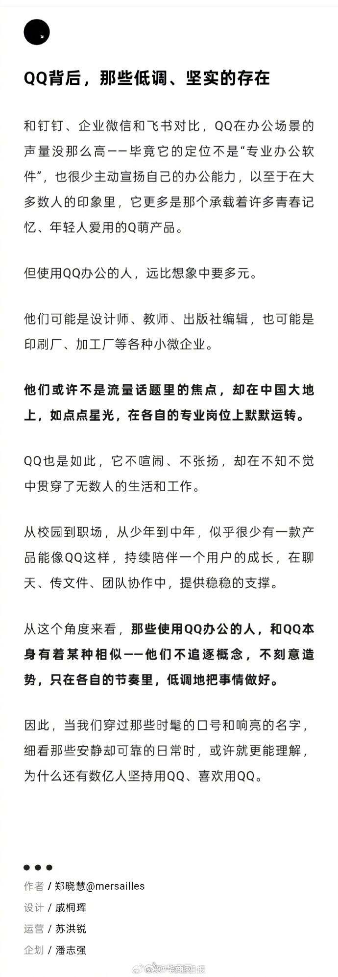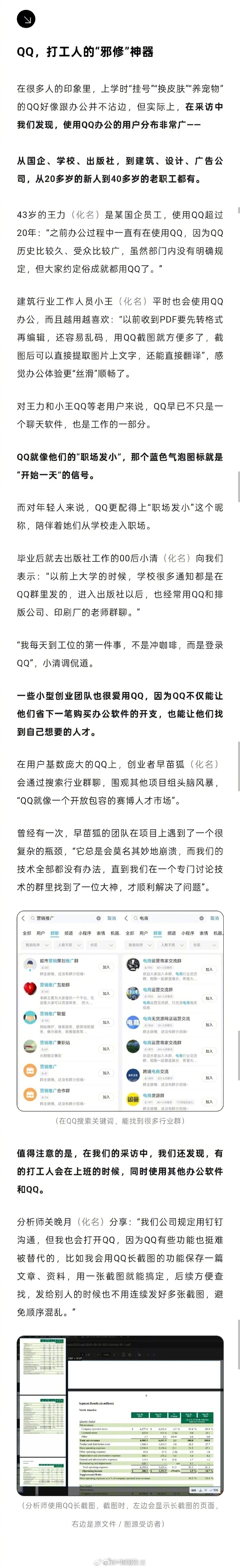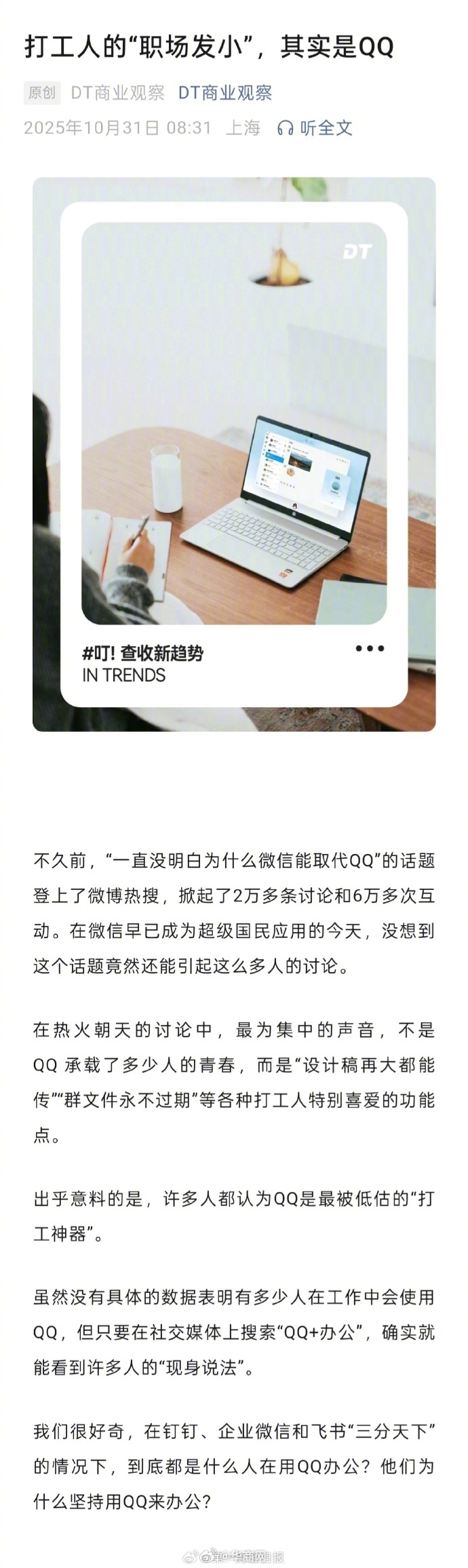 【 #打工人职场发小原来是QQ# 】#打工人又流行起用QQ办公#不久前,“一直没明白为什么微信能取代QQ”的话题登上热搜,掀起了2万多条讨论和6万多次互动。