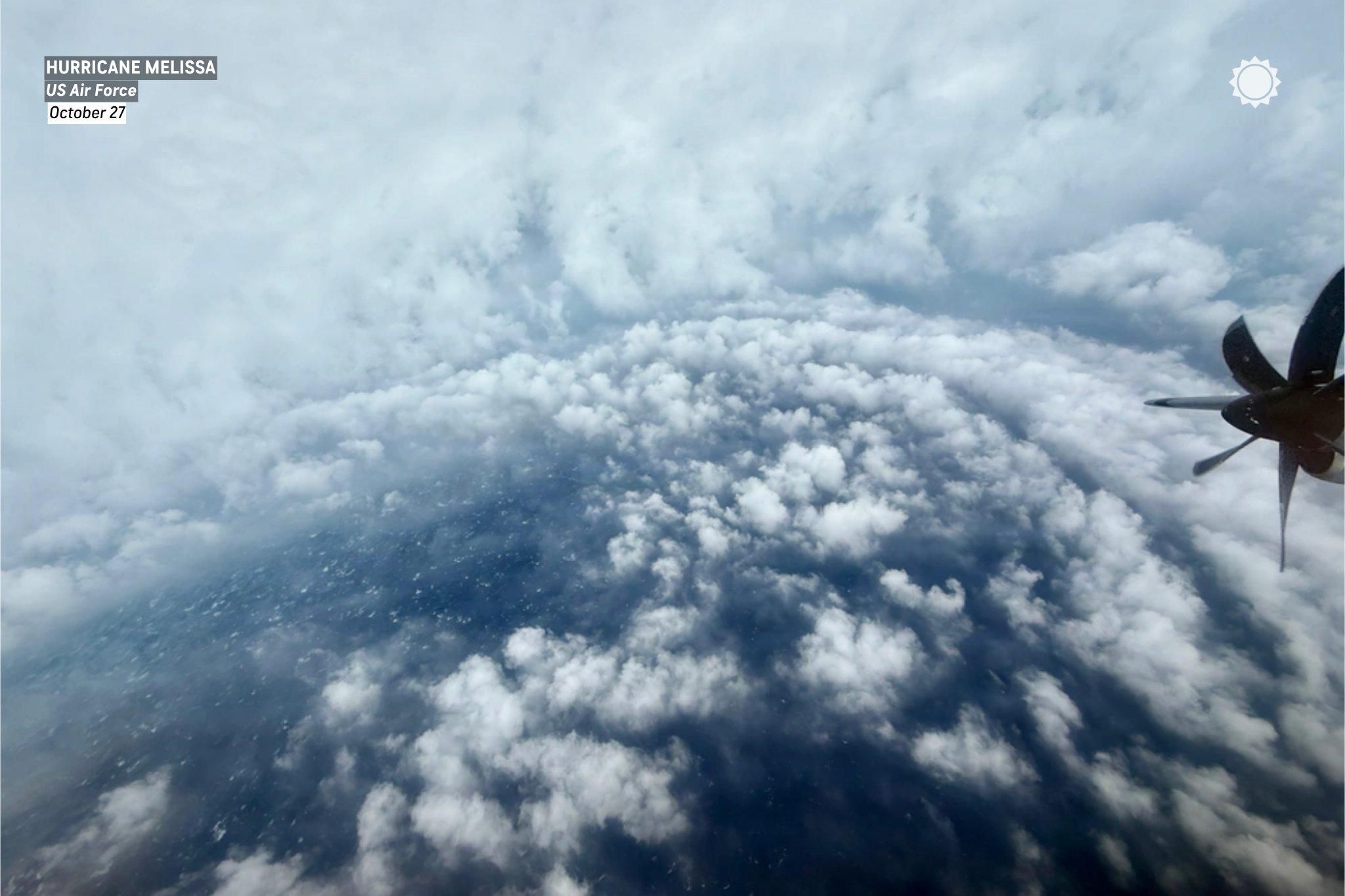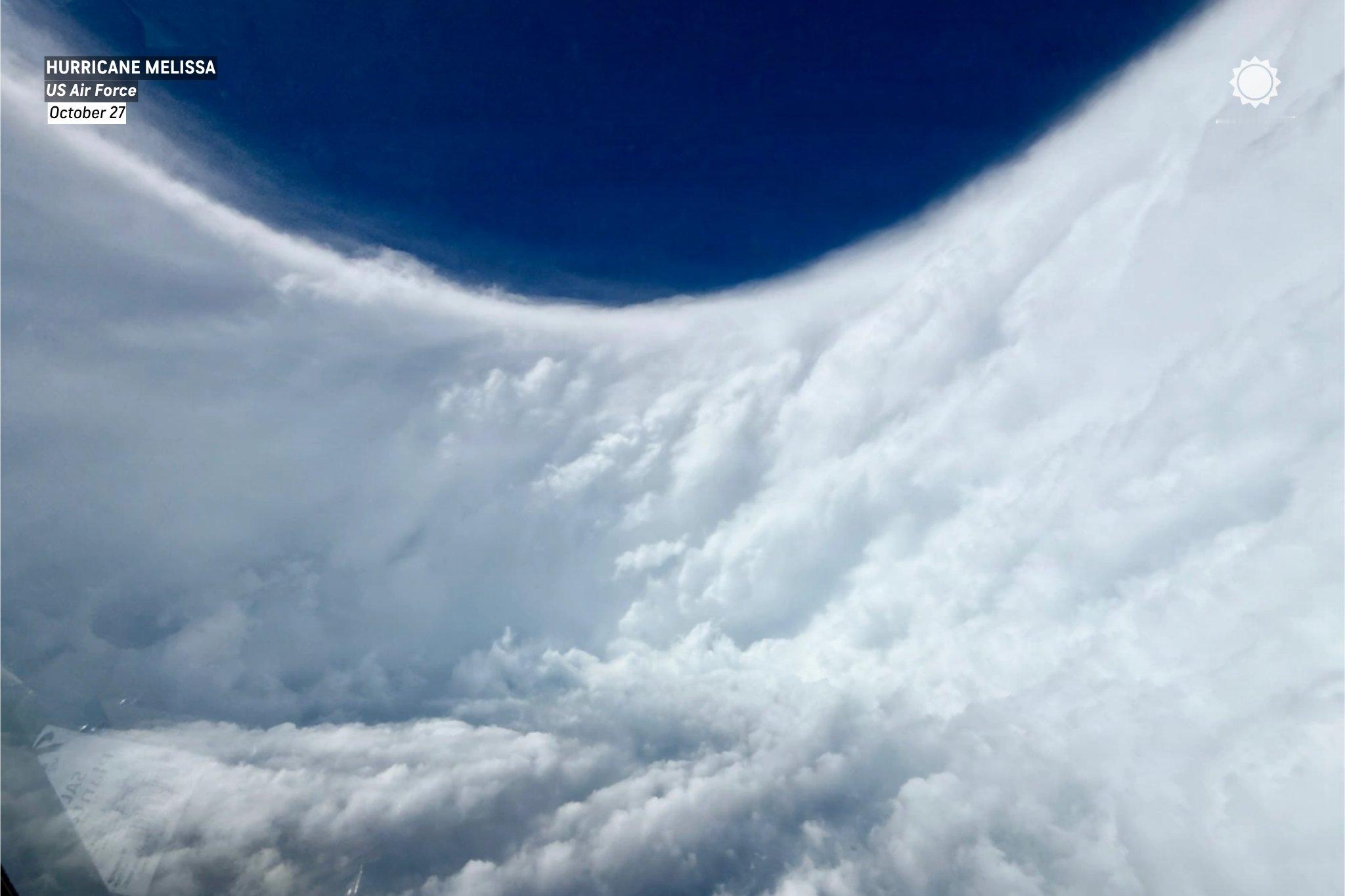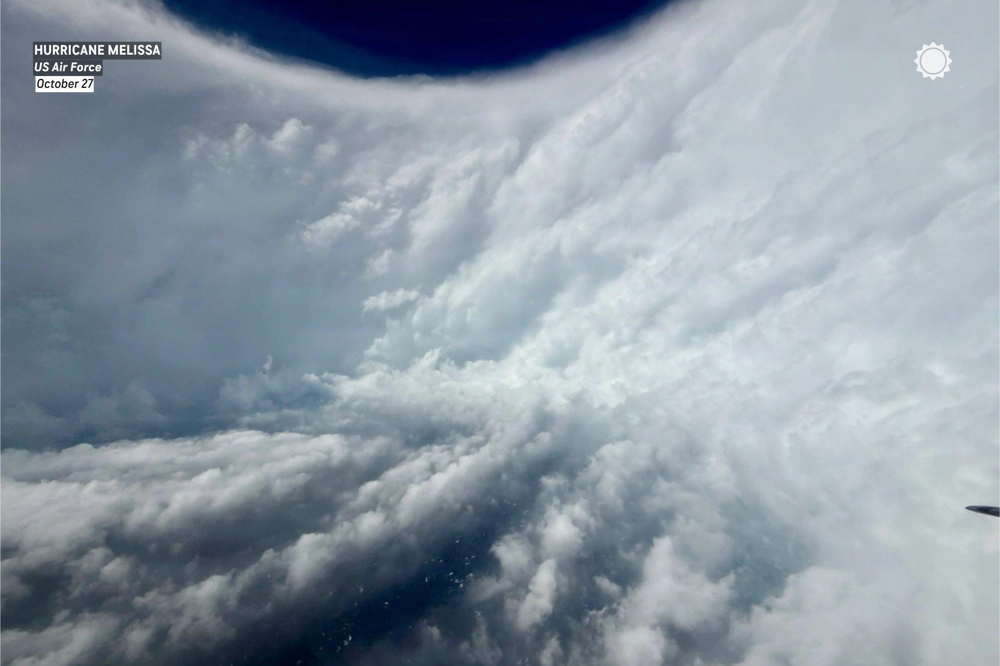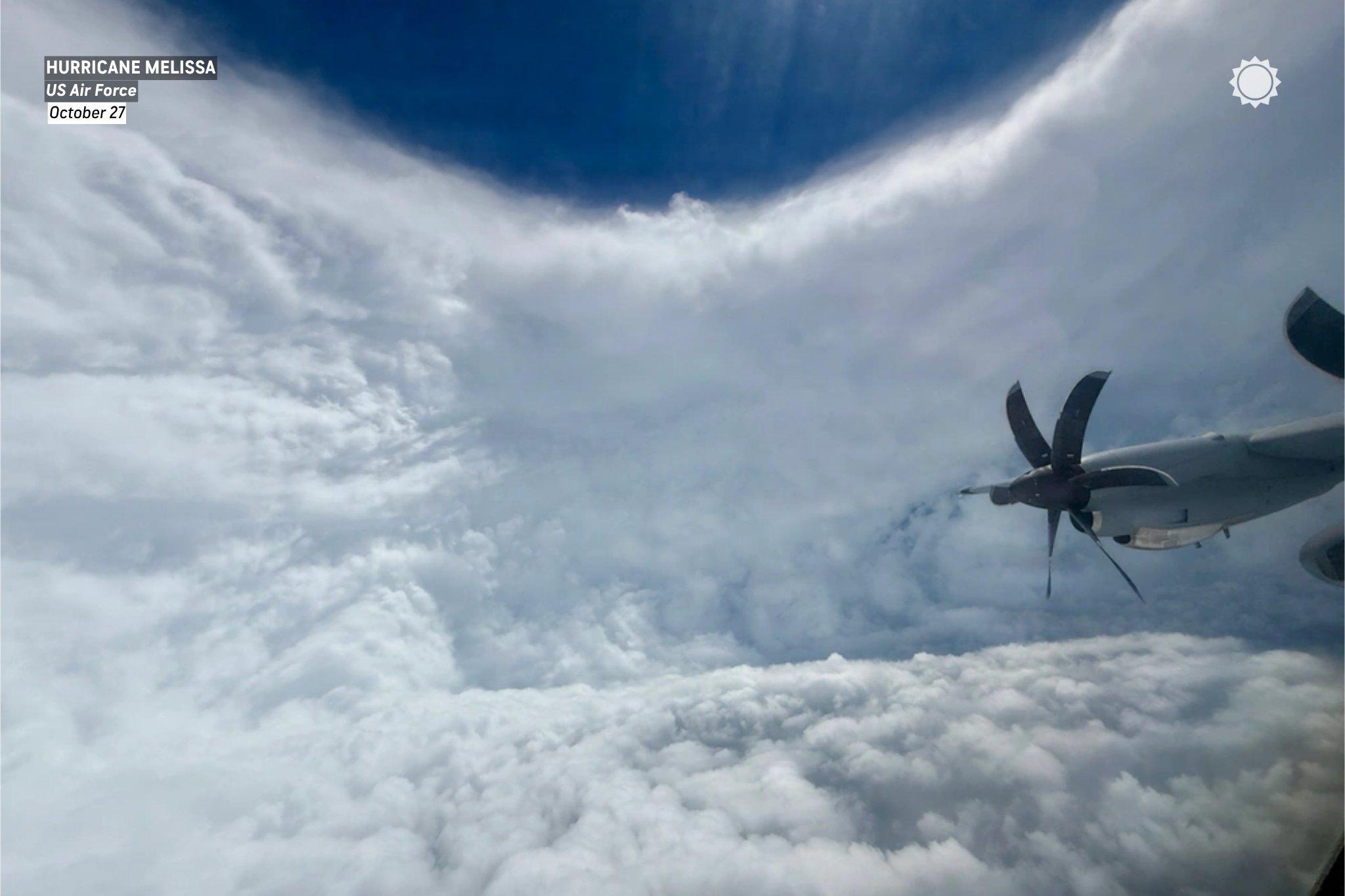 美国空军飓风猎人飞越五级飓风梅丽莎,捕捉到了风暴强大风眼内部的景象。