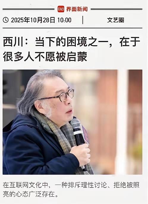 诗人西川:当下的困境之一,在于很多人不愿被启蒙。 …… 大家认同他的观点吗? 感觉“启蒙”是一个很古老的词语,历史书上的,xx启蒙运动……[捂脸]