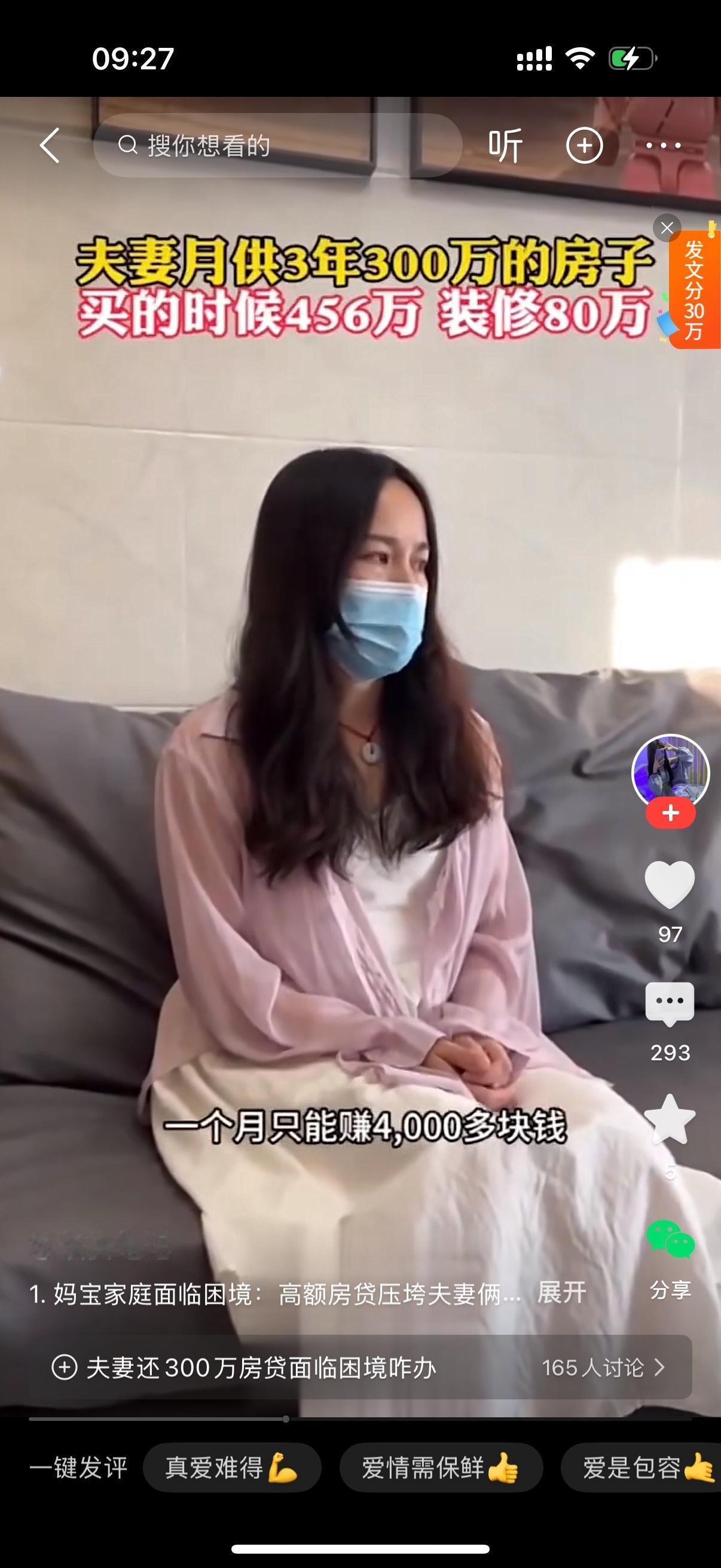 女子对着镜头哭诉现在每个月要还5000块钱的房贷,而自己的工资一个月才4000多块钱,直呼还不起还不起。原来女子离异带了一个孩子,在2021年贷款买了一套456万的房子,装修花了80万。现在房价基本腰斩,只能卖250万,工资也一降再降,快供不起房了。女子内心非常挣扎,不知何去何从。