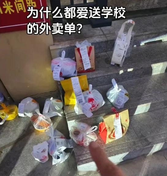 学校往往学生群体庞大、且宿舍密集,一到饭点单量瞬间爆棚,容易晒出“几十单排成一面墙”的视觉冲击画面,骑手也更容易送[doge]
