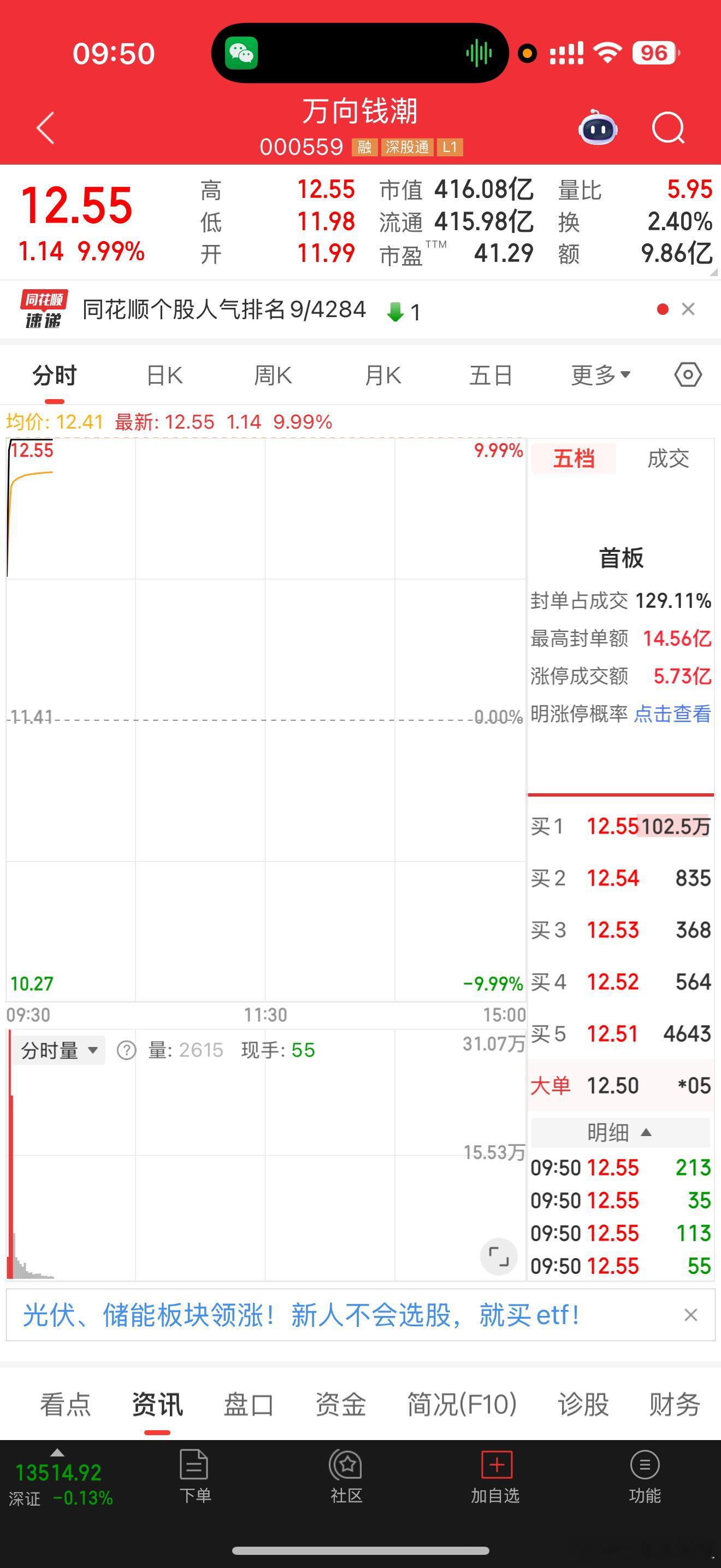 一字板封死!昨天才割肉?今天这只票开盘就被死死封在涨停板,买盘力道超足!消息面利