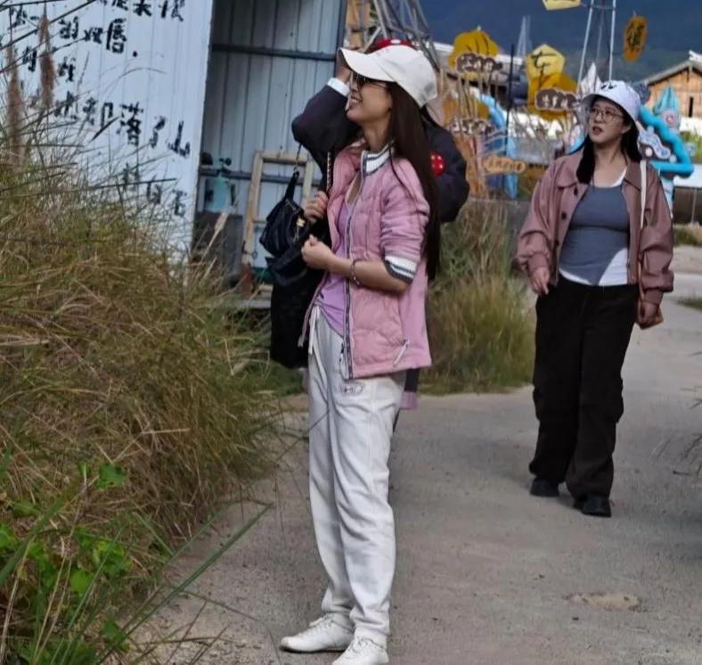 美人迟暮,42岁的黄圣依被身材丰满的小姐姐成功抢镜! 自从和杨子分手后,黄圣依貌似彻底放飞了自我,她不是在录制综艺节目,就是在游玩的路上。 这次有网友在云南遇到了黄圣依,或许认为地方比较偏僻,游客量不大,黄圣依打扮的比较低调,她戴着白色的帽子,粉红色的上衣,以及同帽子一样的裤子和鞋子。说实话,这样的黄圣依人群中并不瞩目,也很难被认出来。 其实这两张照片,大家更多的关注点是黄圣依身后的小姐姐,她身材圆润,模样姣好,戴着眼镜的她看着也挺有文化。显然,小姐姐成功的从黄圣依身上抢到了焦点。 再看看看黄圣依,肉眼可见,现在的她实在是太瘦了,瘦到胳膊上看着没有一点肉。而且在没有聚光灯的照耀下,黄圣依的皮肤黝黑,整个人跟舞台上差距比较大。 假如让你选择,你是选择名气很大,身材消瘦,且已经步入中年的黄圣依,还是选择后面那位身材圆润,气质不凡,但寂寂无名的小姐姐呢?