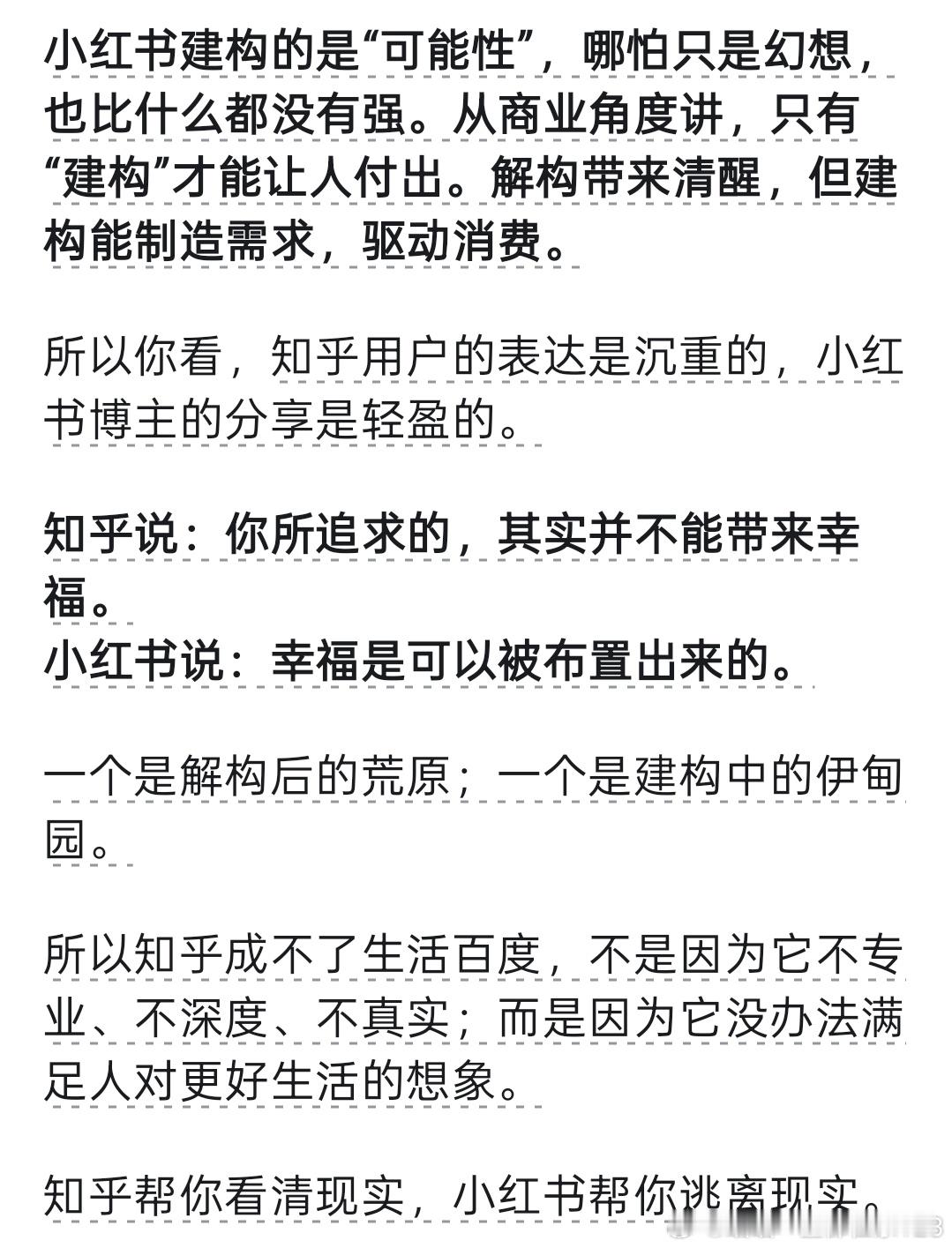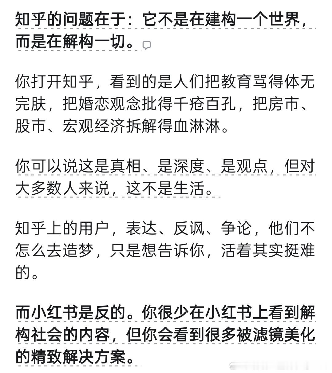 解答了我的困惑:为什么小红书那么火,而知乎逐渐凋零。