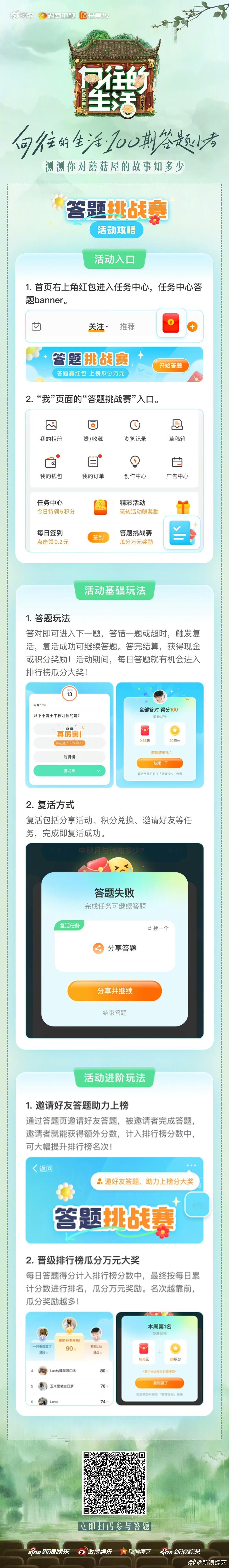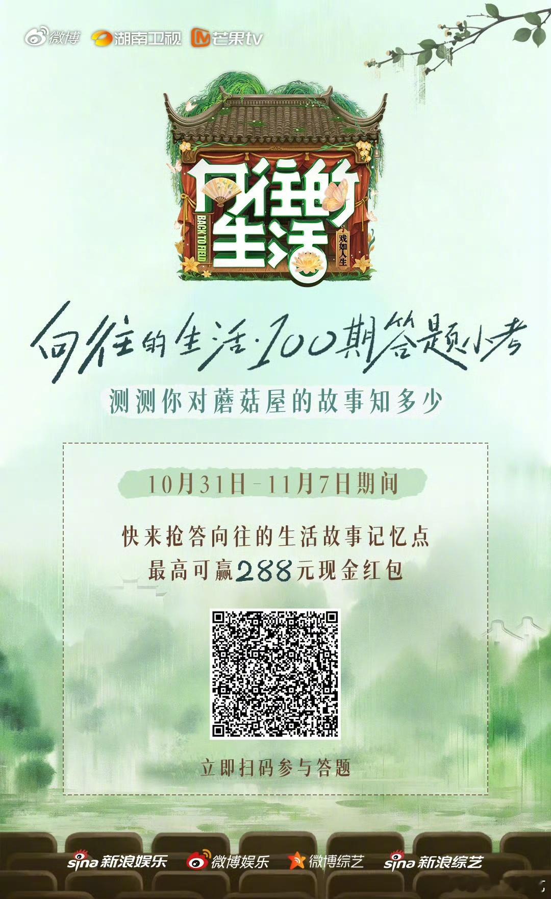 向往的生活 新一轮答题挑战到来啦!快来参加向往的生活100期答题小考 ,有机会瓜分现金红包哦!向往的生活戏如人生