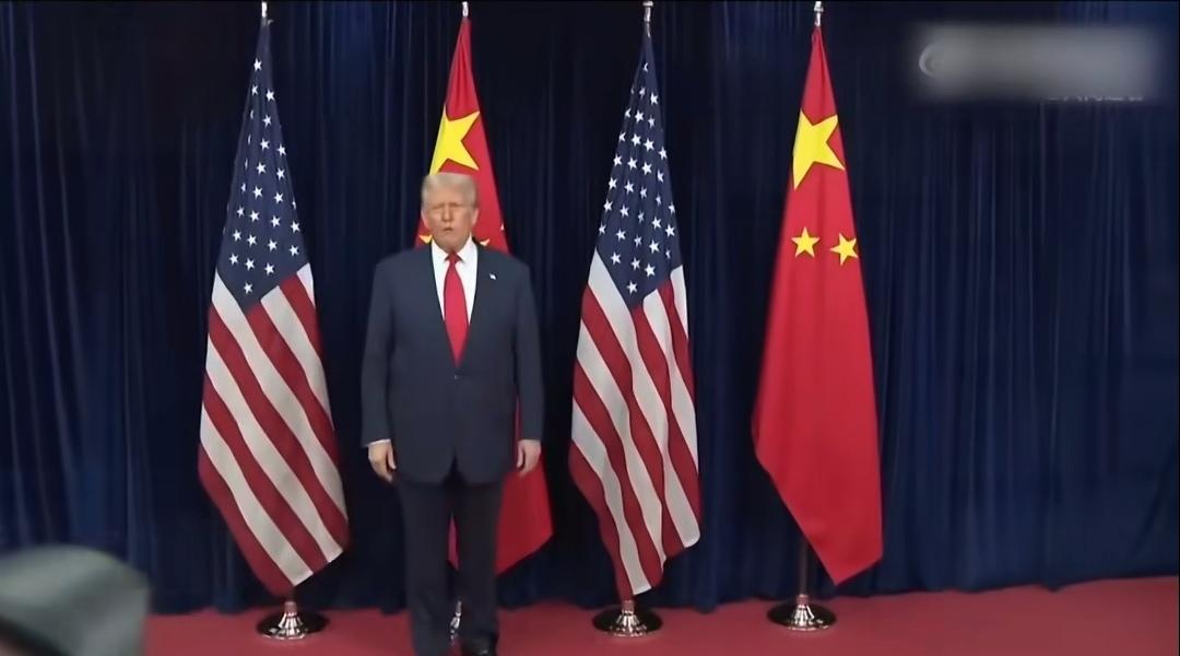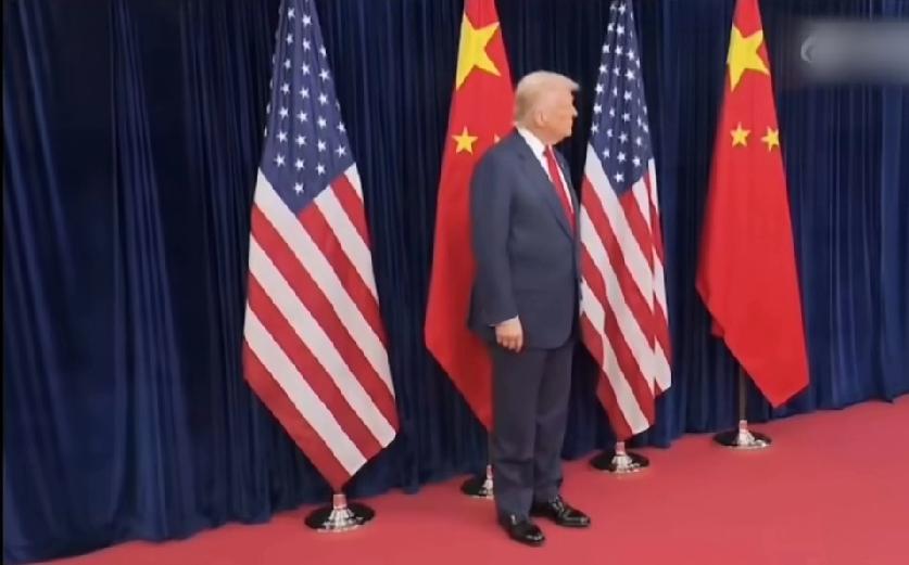 特朗普着实又秀了一把!釜山非正式会晤,这站位恰到好处“有点意思”🫢 身后是五星红旗,胸前似少先队员红领巾飘扬。 身后是强大的中国,在中国面前就像一个小学生。 而且心不在焉,东张西望。哈哈!