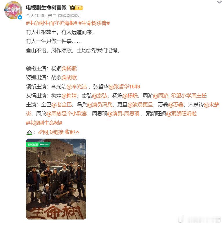 杨紫胡歌生命树最新海报,感觉拍了好久,才杀青吗?