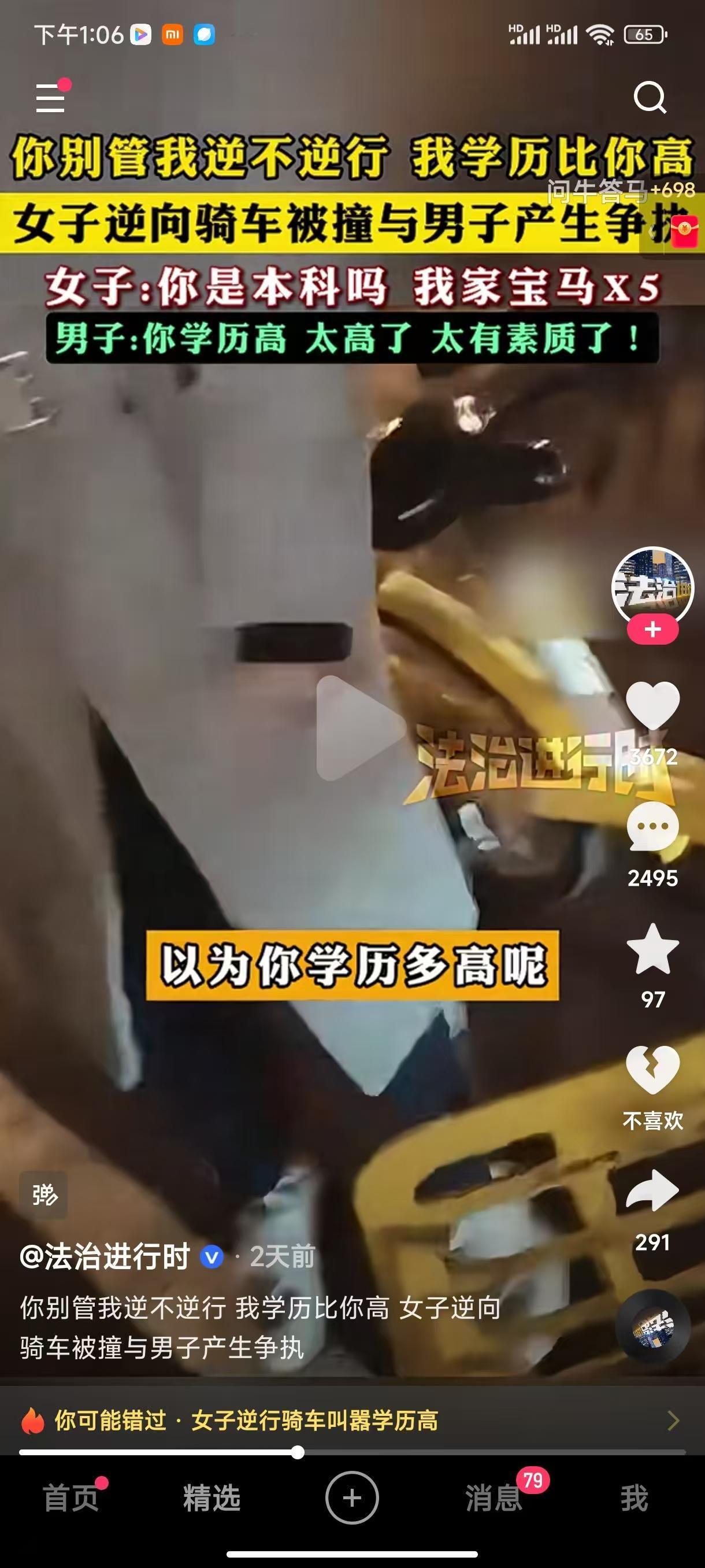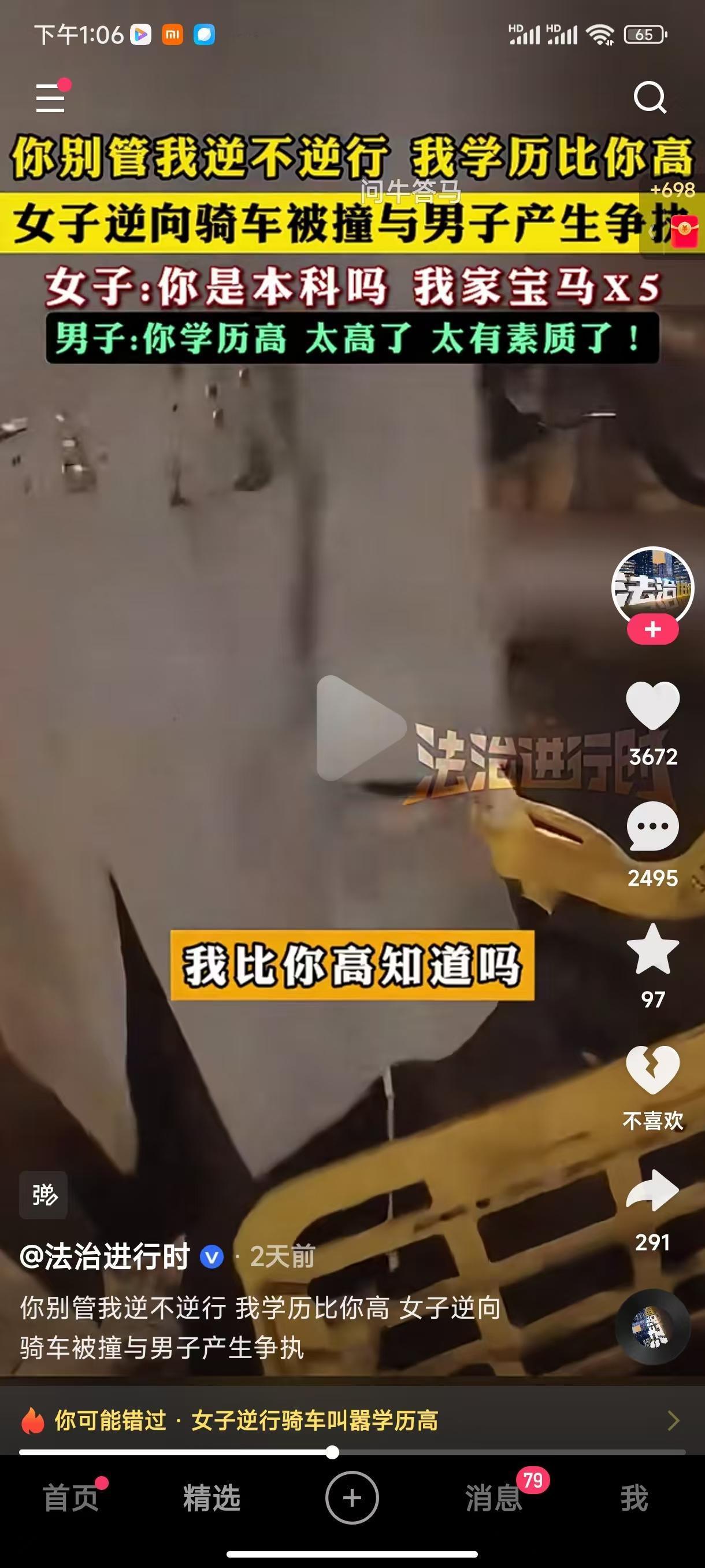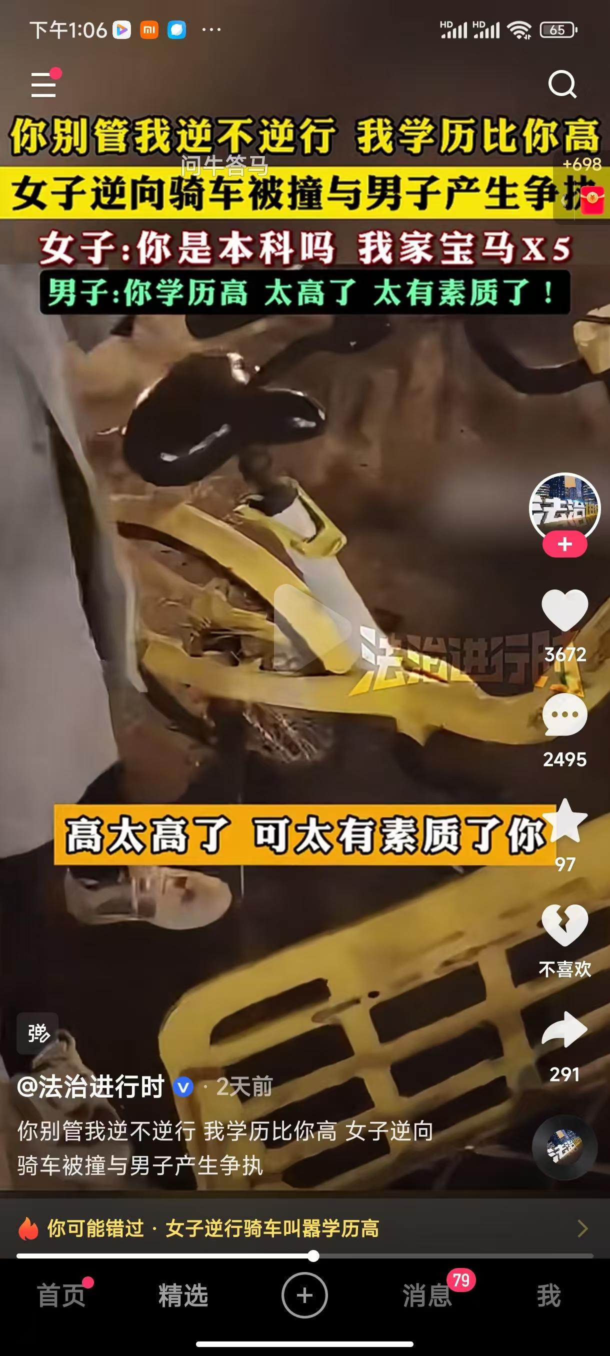 事发北京,一女子骑车逆行与小轿车发生碰撞,第一时间不是沟通解决问题,而是先贬低对方,“我学历比你高,你有本科学历吗?,我读211,985你还在哪里呢,?”对方想伙说几句就说:“信不信让我老公下来抽你,还说我想逆行家逆行”。 马路不是你家开的,再高的学历都得不到遵守交通规则。真不知道,这高学历的优越感在哪里,不知道她在哪里任职。 但是个人感觉,领导像这样不会解决问题,只会激化矛盾不合适,技术工呢,不懂得人情世故也做不久。哪里适合呢,在政务大厅,或者有街道办,或者税务有些 地方见过如此张狂的。一般好点的私企像这样暴躁的应该不行。 一场本可通过沟通解决的交通事故,却因一方的学历优越感演变成了闹剧。这位女士开口便以"211、985"的标签抬高自己,用学历作为攻击他人的武器,这种行为不仅无助于解决问题,反而暴露了其浅薄的认知和低下的情商。 :教育的目的不应只是获取一纸文凭,更重要的是培养健全的人格和解决问题的智慧。否则,再高的学历也只是装饰,掩盖不了内心的贫瘠