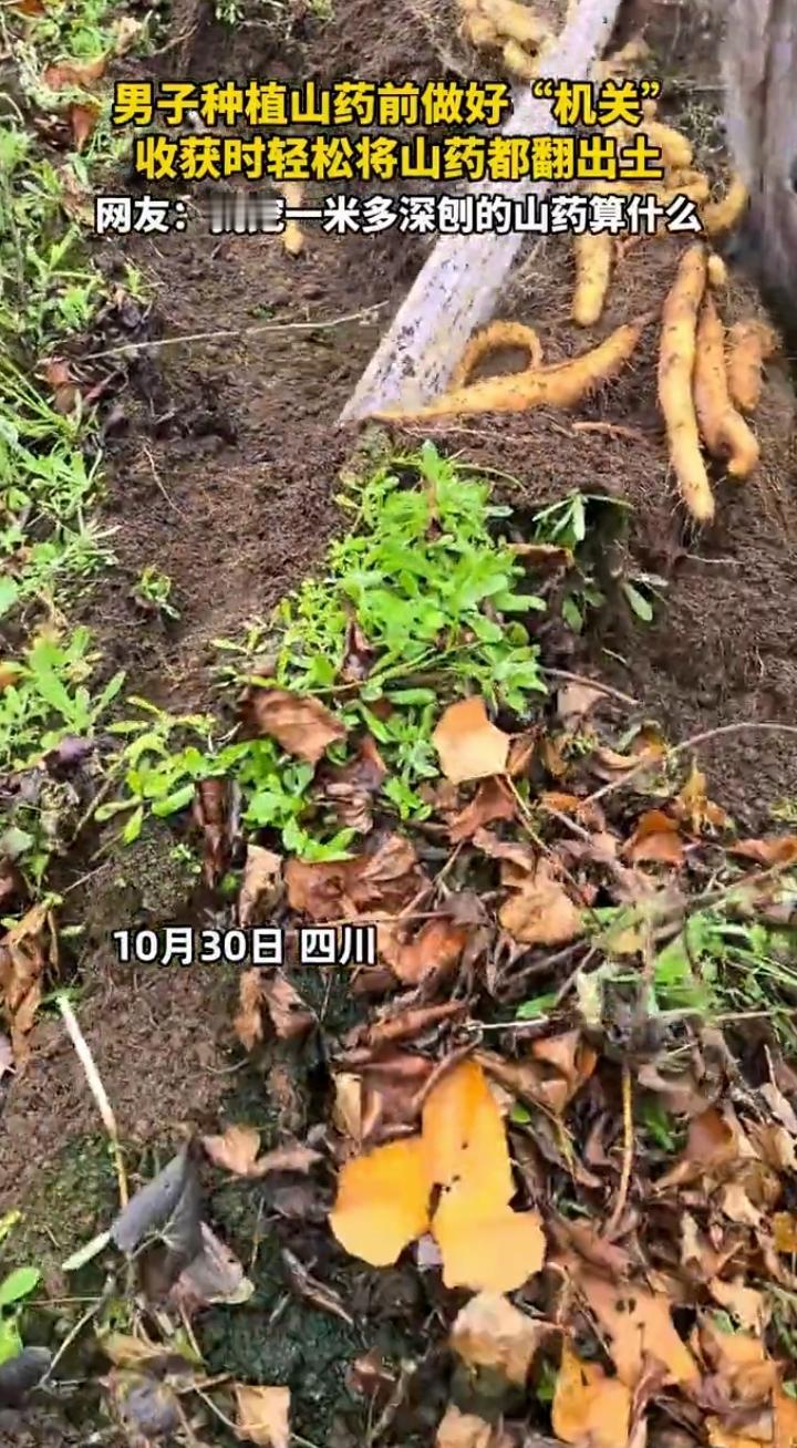 近日四川绵阳,一46岁男子在家种植山药,男子种植前做好了一个机关,收获时,很轻松就将山药给挖了出来! 不少网友看到视频后,纷纷佩服男子的思维,是个头脑灵活的人啊,这样做好一个机关,收获的时候,比那些刨土一米深才将山药挖出来的人要轻松好多啊,而且是省时省力,真是一个种植山药的小妙招啊!