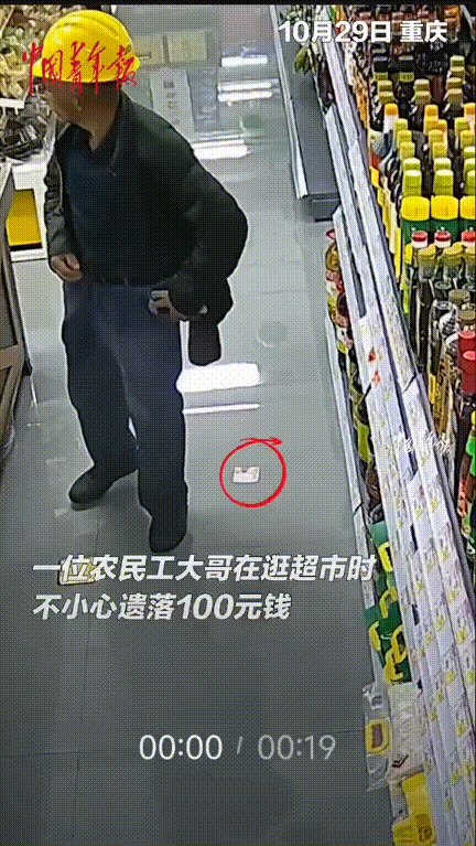 这老板活该发财!重庆,超市老板检查货品的时候发现地上有100元现金!老板回想着刚