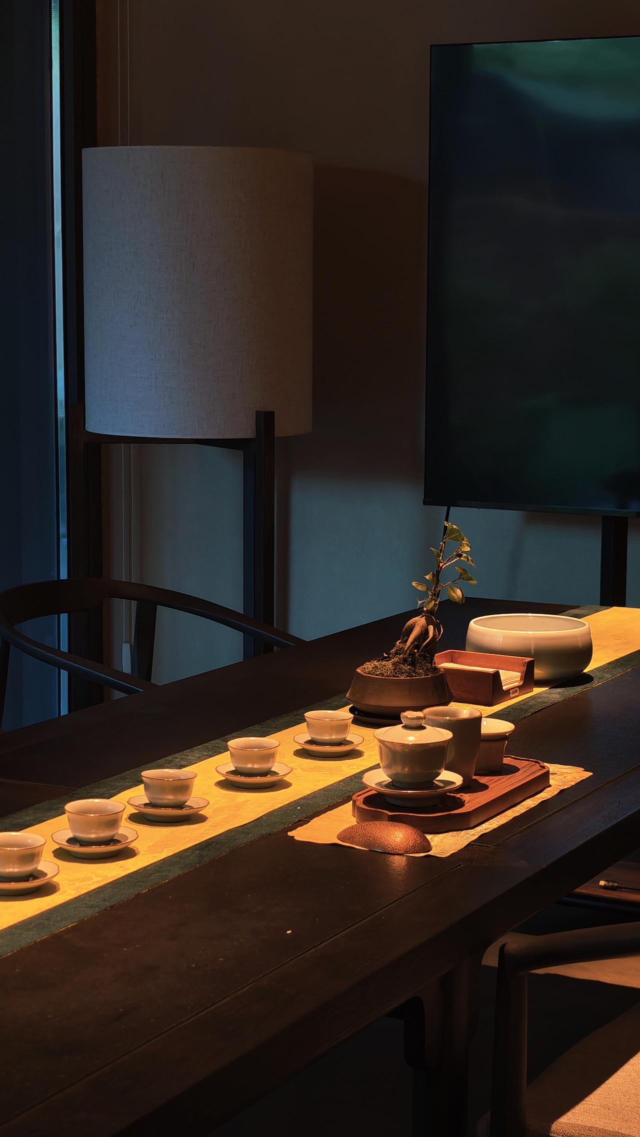 繁华也许喧嚣, 却总在某个转角 为你藏下一方静谧。 就像在这青砖灰瓦间, 旗袍的青碧与红纹, 和着茶席的暖光、竹篱的疏影, 把都市的纷扰滤成了禅意的留白。 风过处, 铜铃轻响, 原来繁华的另一面, 是传统与现代共生的雅致, 是在一方院落里, 让身心慢下来,细品时光的温柔。 拍摄心得分享: ①在这组作品中,我注重光影的叙事性:利用侧光勾勒旗袍的曲线与建筑肌理,营造立体层次。 ②同时把握色彩的对比与和谐,青旗袍、红纹饰与黑灰建筑形成视觉张力,又通过暖调茶席统一调性。 ③构图上结合环境肖像与场景特写,让人物与“上竹院”的禅意空间相互呼应,用镜头语言传递传统美学在当代语境下的质感表达。