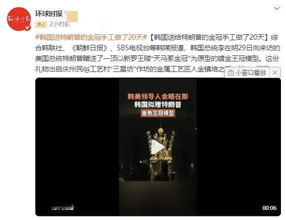 本来以为韩国比日本大方,结果才知道那王冠,竟然是镀金的、镀金的!其实,哪怕是纯金制作,这个王冠也就值3亿韩元(约150万元人民币)的样子。现在好了,不但是个复制品,还是个镀金的,岂不是让大统领白高兴一场?