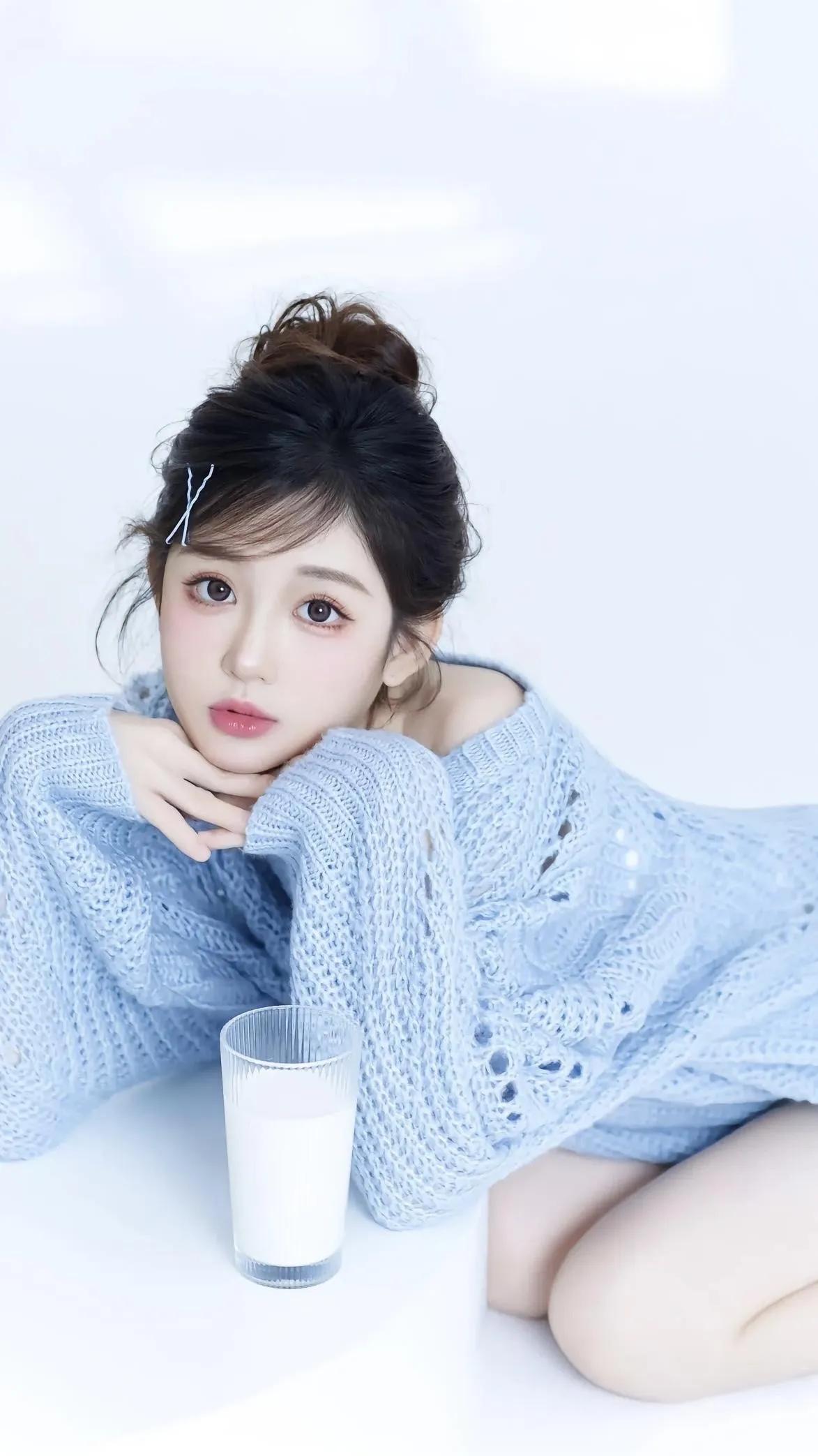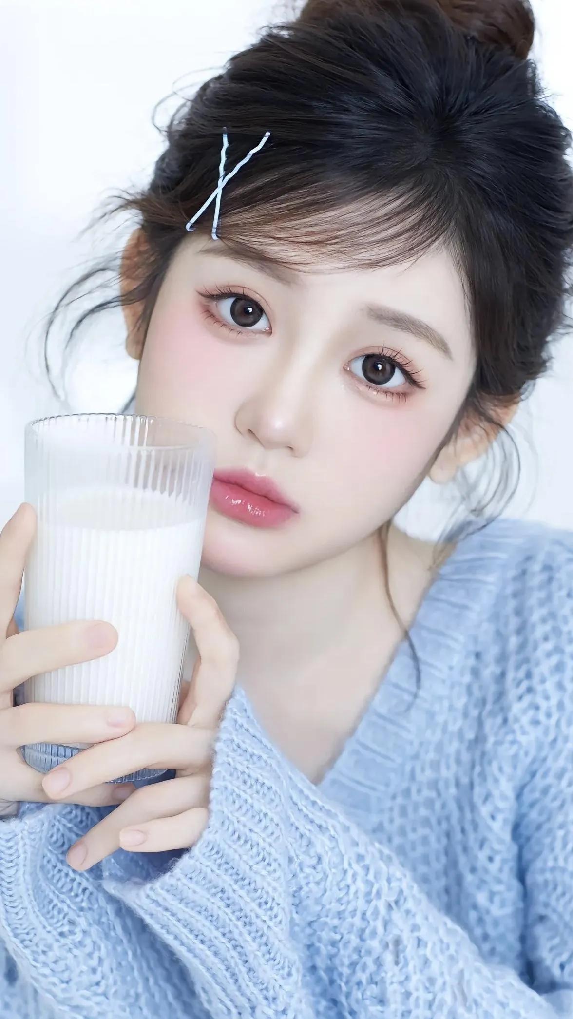 冬日暖阳下的甜美少女,牛奶与毛衣的清新搭配,温暖你的心房。🌞💕