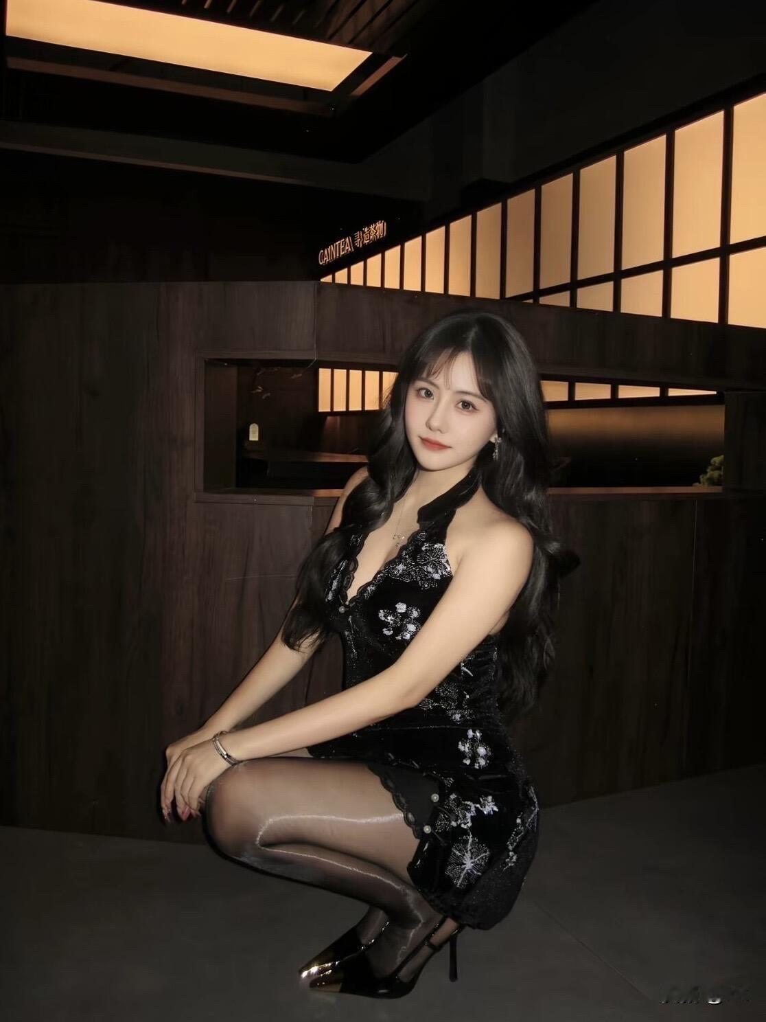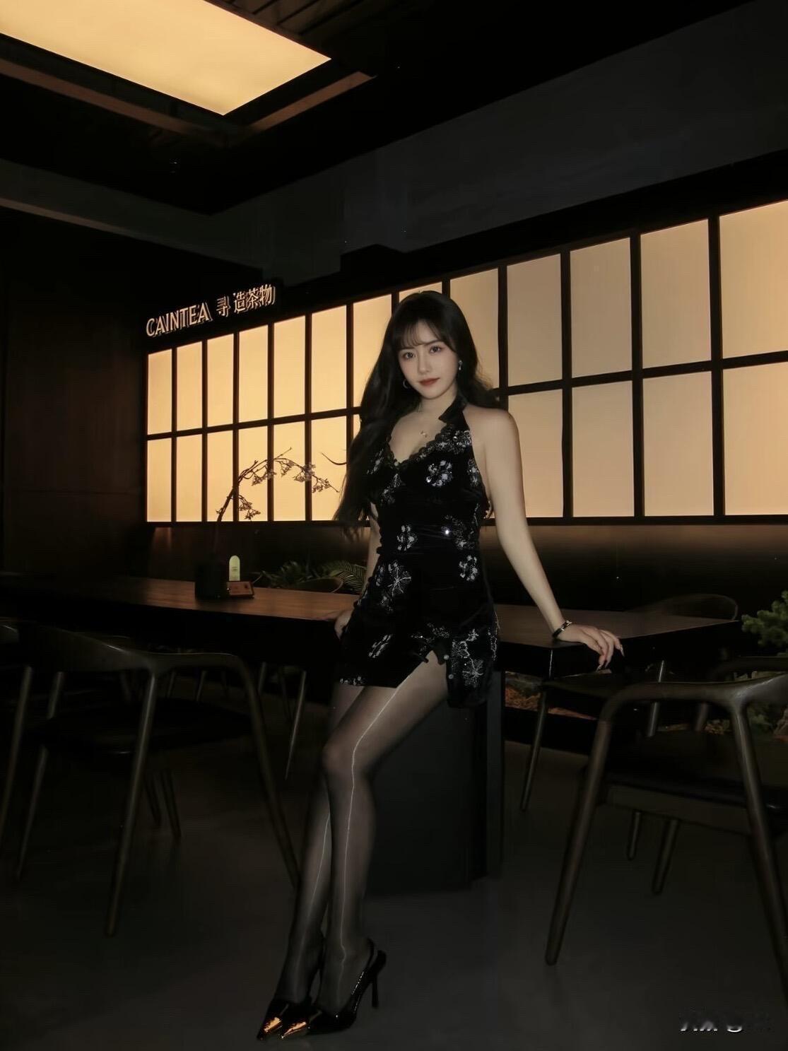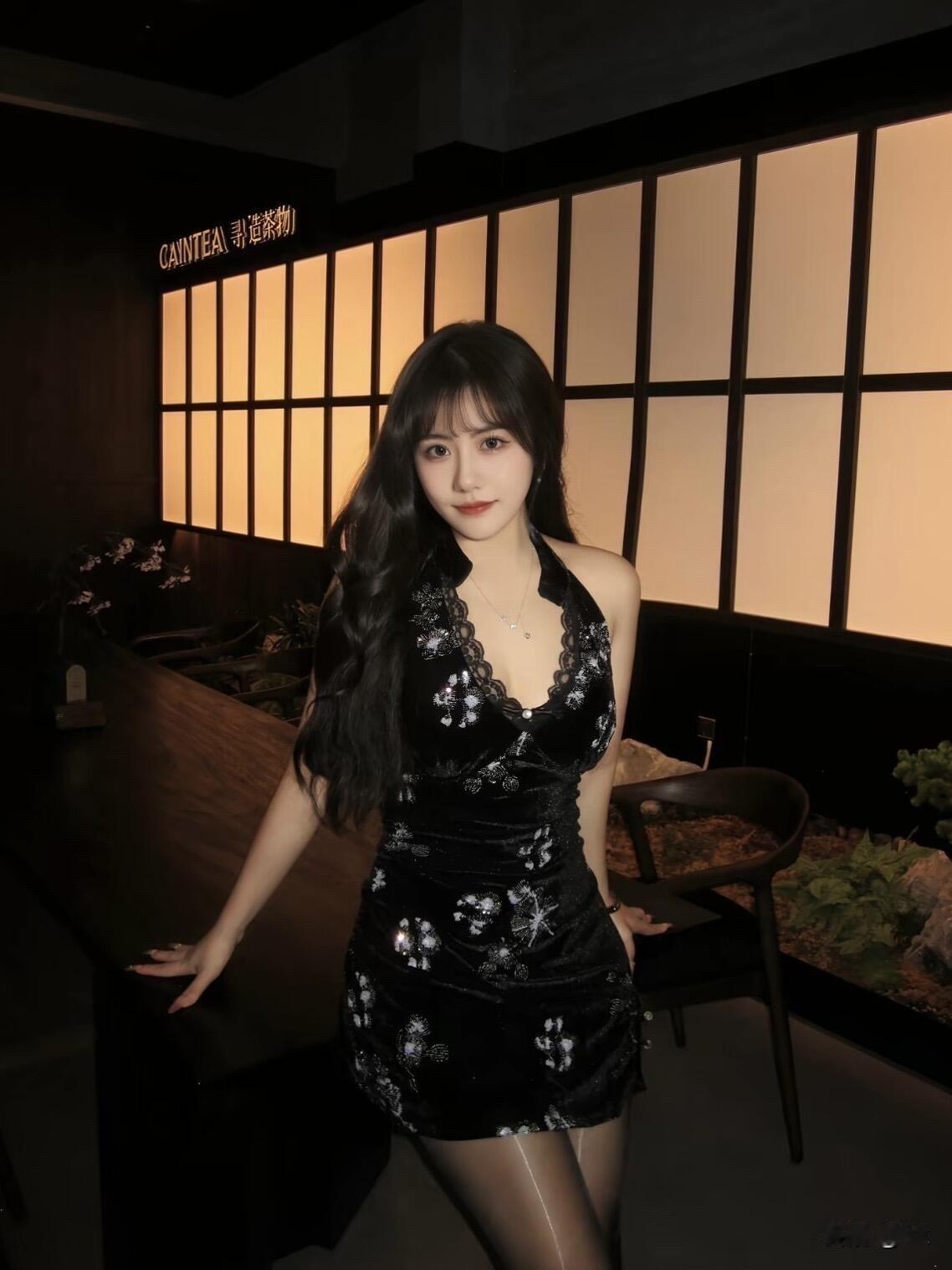 宝子们!今天这身小黑裙直接美到失语!丝绒材质自带高级感,上面的刺绣花纹精致到不行,挂脖设计还能露出好看的肩颈线~搭配黑丝和尖头高跟鞋,一整个又辣又优雅的感觉! 在暖光灯下拍照,氛围感直接拉满,感觉自己像电影里的女主角~你们觉得这套适合约会还是参加派对呀?