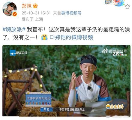 跑男团围观郑恺野外洗澡嗨放派在《嗨放派》第二期中,郑恺的野外洗澡瞬间成了笑点,他的紧张表情和跑男团的围观,真是太搞笑了。
