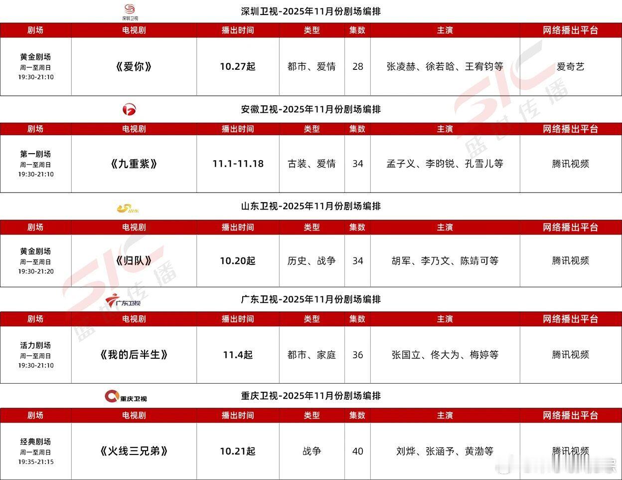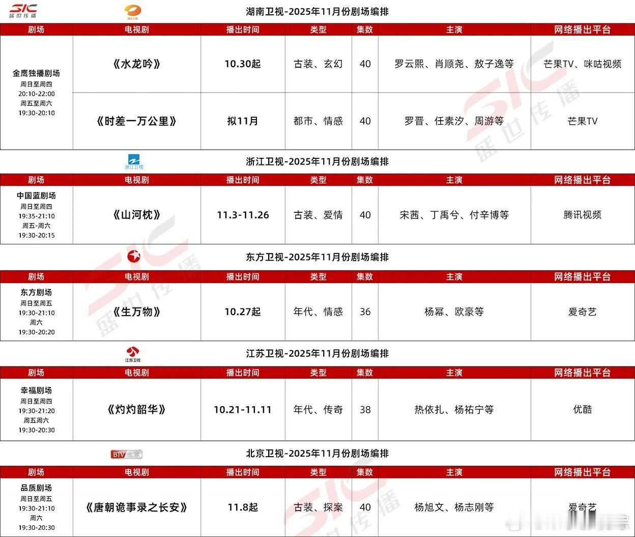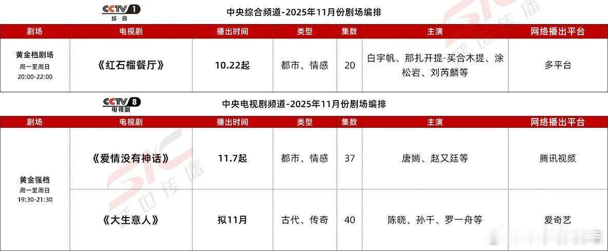 11月央视卫视爱优腾芒各平台预排播剧集 🈶