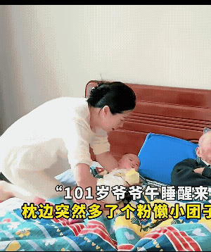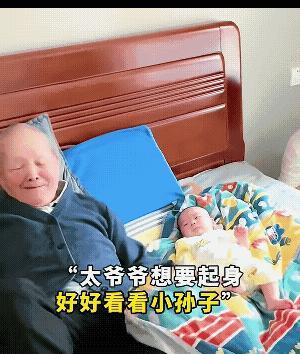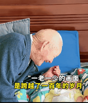 101岁太爷爷看着自己的小玄孙,脸上充满了笑容,满满的爱,好幸福温馨的一幕,太感