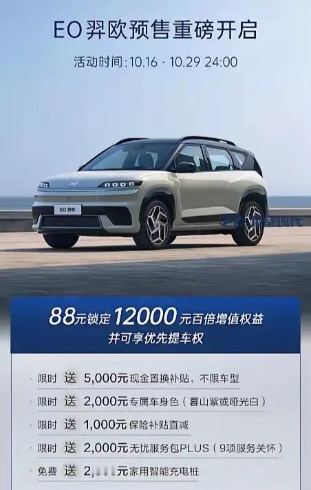 6%的家庭,买50万元以上的车; 12%的家庭,买20-50万元的车; 45%的家庭,买10-20万元的车; 37%的家庭,买10万元以下的车。 这就是赤裸裸的现实,买10到20万元价位的家庭用车才是主流。北京现代汽车坚持市场和用户需求为导向,于10月29日又推出了一款新质力纯电SUV车型EO羿欧,这可是北京现代亲爱能源车型的开篇之作,以“全球品质+中国技术”为核心路径,直面15万级纯电市场。 EO羿欧以设计时尚、技术可靠、空间实用、配置丰富、安全舒适为卖点,指导价区间11.98-14.98万元,现在下订还有新车好礼相送。新车外形时尚,用八方水晶大灯强化了前脸的辨识度,长宽高尺寸为4615/1785/1698,轴距2750。紧凑型车身突出了用车成本的经济性和性价比。 EO羿欧基于现代E-GWP纯电平台打造,采用纬湃三合一集成电驱系统和刀片电池,两驱版单电机最大功率160KW,四驱版双电机最大功率233KW,续航里程分别为540公里和722公里,四驱版零百加速为7.2秒。支持800V高压快充,27分钟可完成30%-80%的补能。每公里电费0.08元。 在智能化方面,EO羿欧全系搭载“智心合一”辅助驾驶系统,用19个传感器和20项ADAS功能保证了L2级智能辅驾水平,具备自适应巡航、盲区显示、540度倒车影像等功能。车机系统采用8295芯片,标配27英寸超薄4K双联大屏,语音响应灵敏,娱乐和车手互联功能丰富。 安全方面,EO羿欧采用占比77.5%的高强度钢车身和“八横七纵”防护架,关键部位使用了1500MPa热成型钢,打造出了720度铠甲安全车身,还配备9安全气囊。甚至经过了整车120万公里极端环境的道路测试、三电与底盘40个月的专项测试和1000小时耐腐蚀测试等,证明了这款车的耐久可靠性。 (网图侵删)