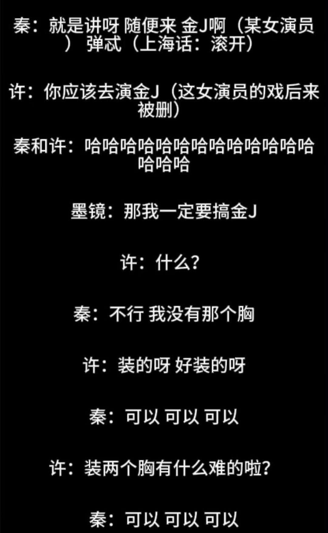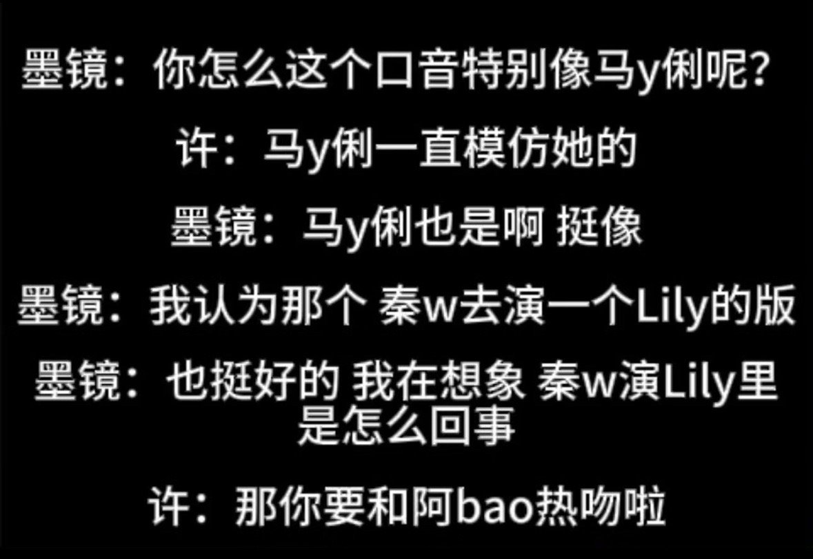 许姓工作人员说马伊琍模仿秦雯说话,王家卫还说让秦雯去演个Lily版。