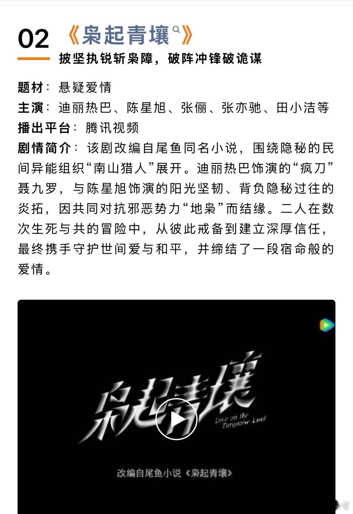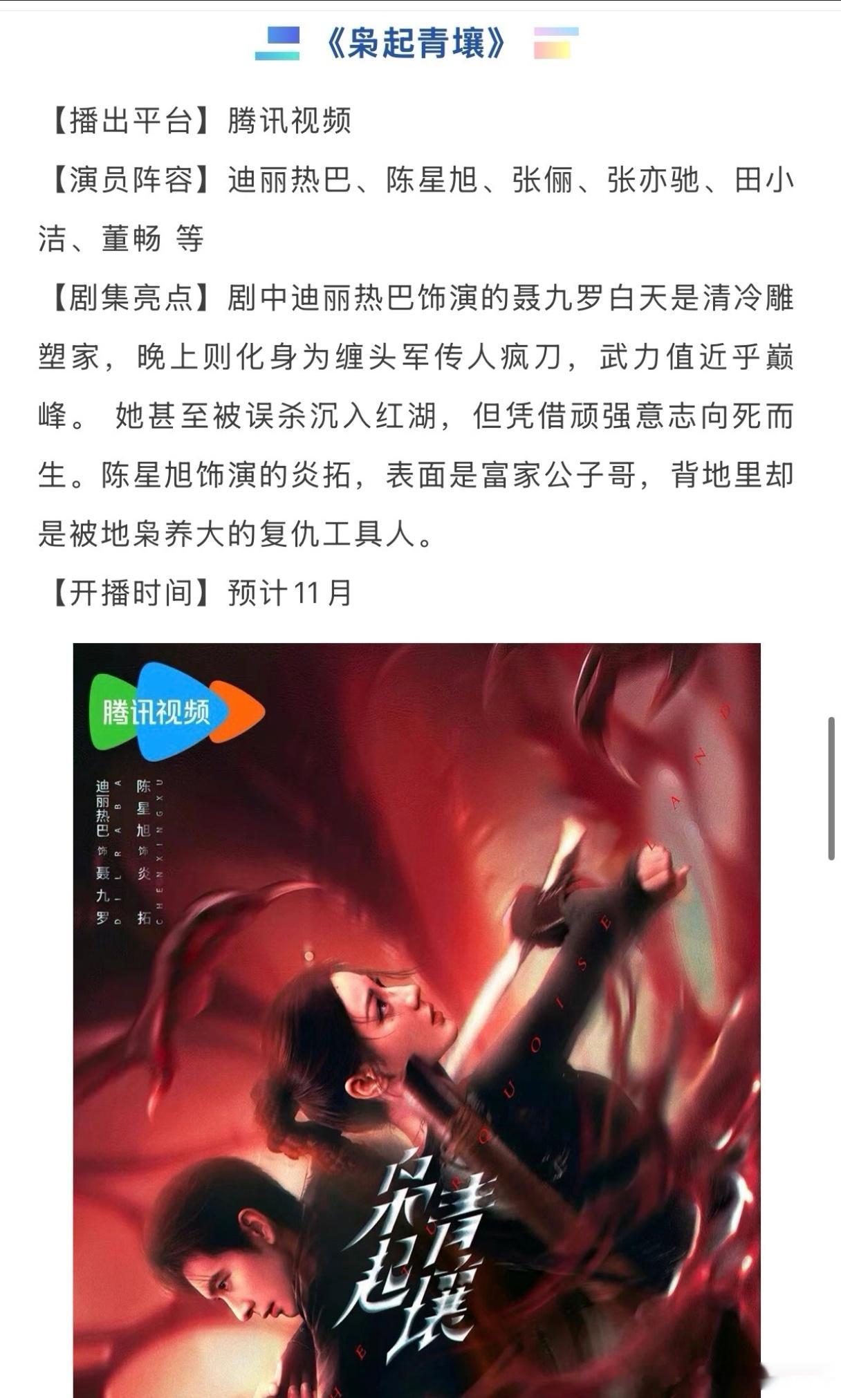 迪丽热巴、陈星旭《枭起青壤》开启双招商,预计11月播出