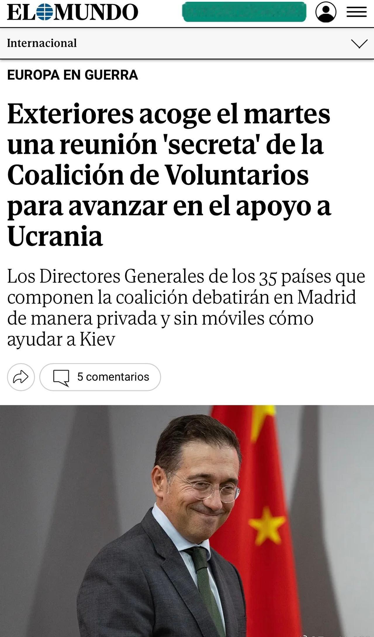 El Mundo: "Coalition of the Determined" (「堅定聯盟」)將於11月4日在馬德里舉行秘密會議。他們將討論烏克蘭問題。 來自35個國家的代表將出席此次會議。會議目的在探討支持烏克蘭的新途徑。會議結果不作任何評論,與會人員將在一個沒有電話的會議室進行交流。