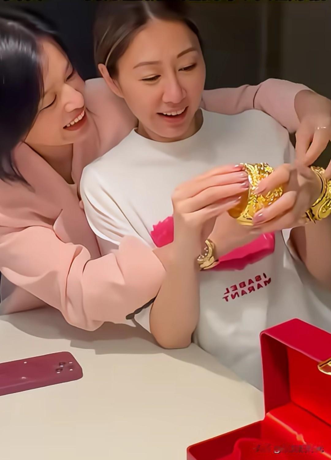 好闺蜜嘴上有多嫌贵,行动就有慷慨。 胡杏儿送出的这一对大金镯子太晃眼了,胡定欣怕是压根没想到好姐妹这么大手笔,她拿礼物时指尖都在微微颤动。 网友说,这怎么着也得几十万了。 胡定欣的小细胳膊戴上这金镯子太惹眼了,也谈不上精致,但黄金不需要精致,越是厚重越是证明了两人的情比金坚。